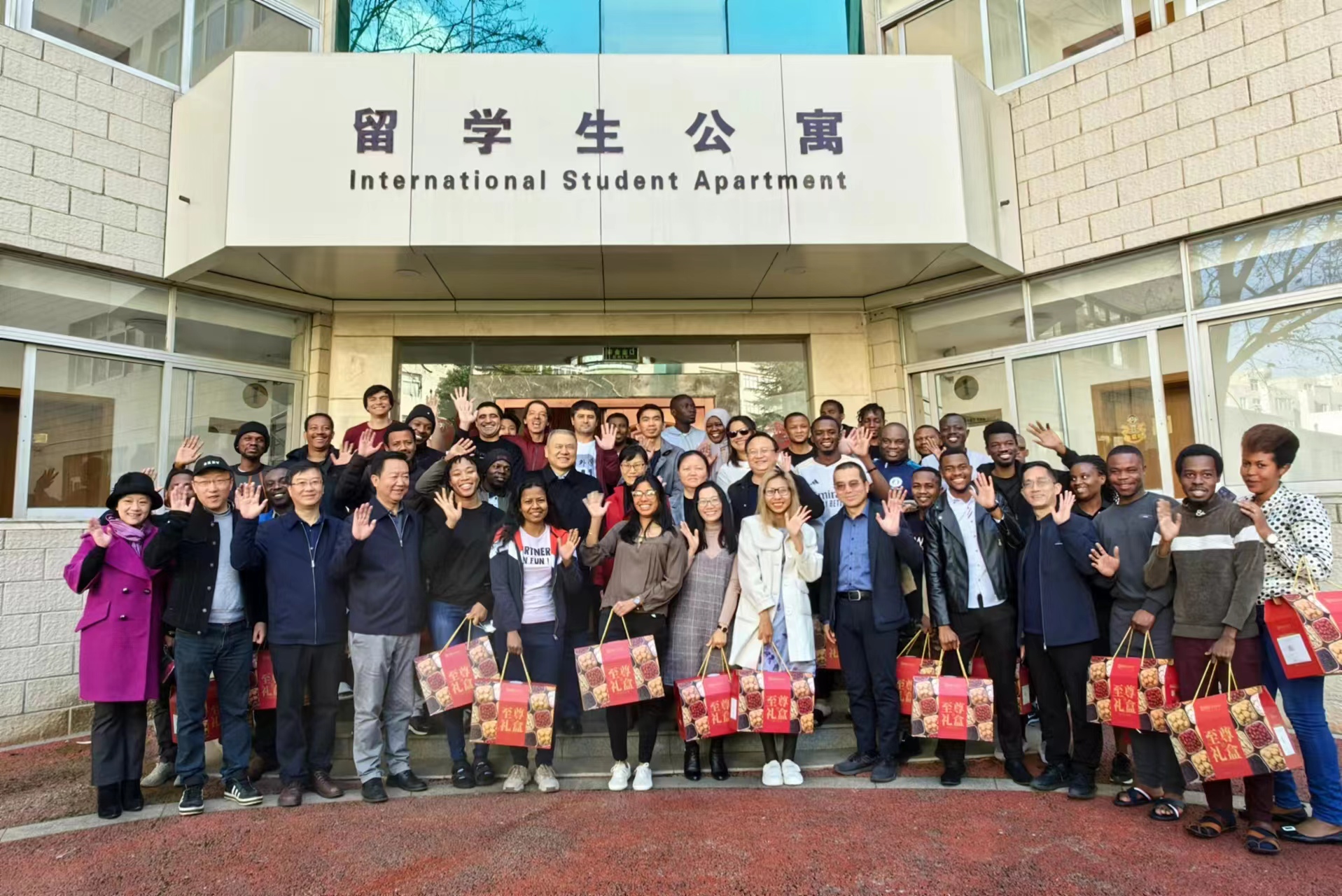 校领导一行还来到留学生公寓看望慰问在校的国际学生,详细了解国际学生们的学习生活情况以及假期安排,鼓励他们多了解中华优秀传统文化,争做传递文化交流的友好使者,同时祝愿国际学生们在学校度过一个祥和平安的春节,在新的一年学有所成。