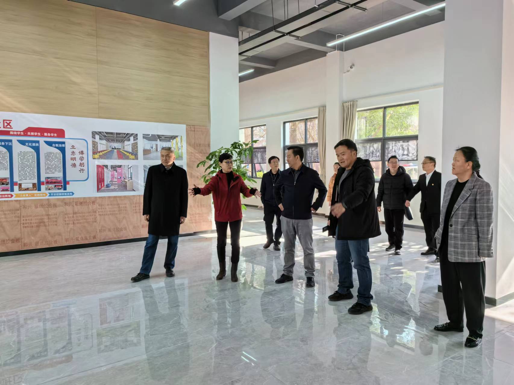 在正在建设中的“一站式”学生社区服务中心,校领导一行详细察看了中心的建设进展,强调“一站式”学生社区建设是学校党委贯彻落实党的二十大精神,探索创新学生综合管理模式的重要举措,希望组织部、学生处等相关部门要以党建引领为核心、以空间建设为基础、以队伍入驻为关键、以学生参与为动能,打通育人最后一公里,把学生社区打造成为学生党建引领新高地、“三全育人”新园地、服务学生新基地、协同育人新领地。