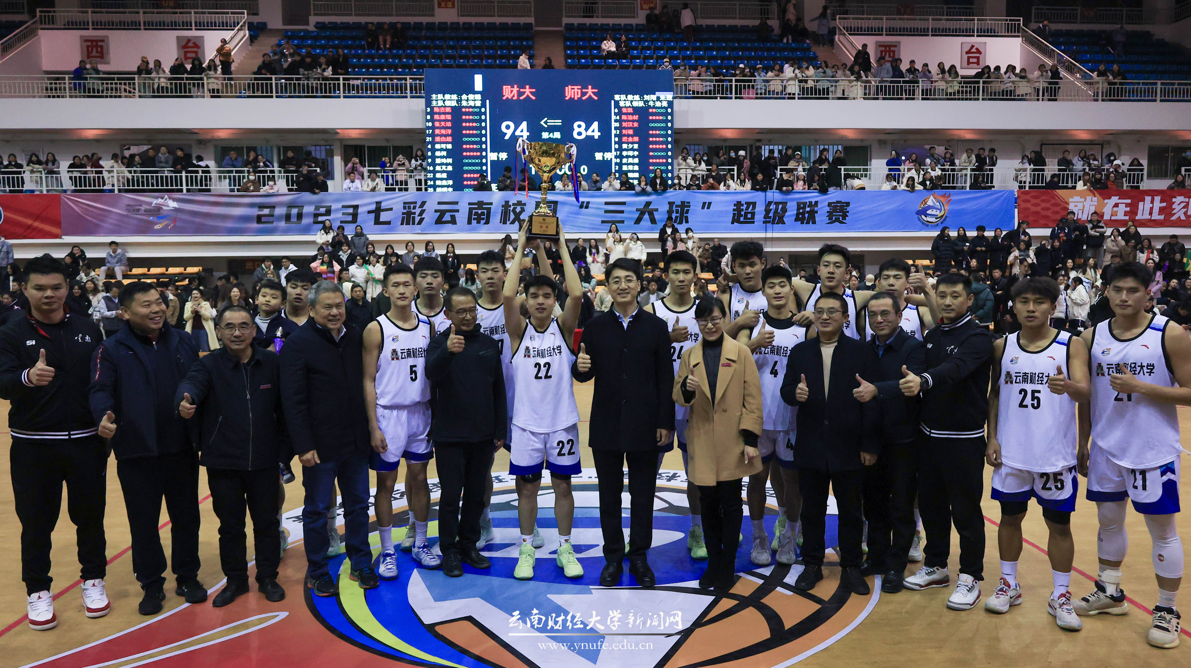 1月3日晚,第26届中国大学生篮球(一级)联赛云南赛区冠军争夺赛暨闭幕式在bat365官网南院体育馆主馆举行,bat365官网高水平男子篮球队对阵云南师范大学队并最终以94:84战胜对手,夺得总冠军,实现队史第8冠。云南省教育厅厅长、党组书记,省委教育工委副书记王云霏为bat365官网获奖运动队颁奖。
