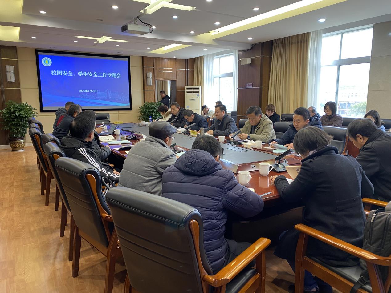 1月25日,学校在龙泉路校区致远楼506会议室召开校园安全、学生安全工作专题会议,传达学习全省校园安全、学生安全工作调度会会议精神,部分校属单位交流汇报贯彻落实学校1月9日学生安全教育管理工作会议情况。校党委副书记施仲军出席会议并讲话,会议由校党委委员、副校长胡海彦主持。
