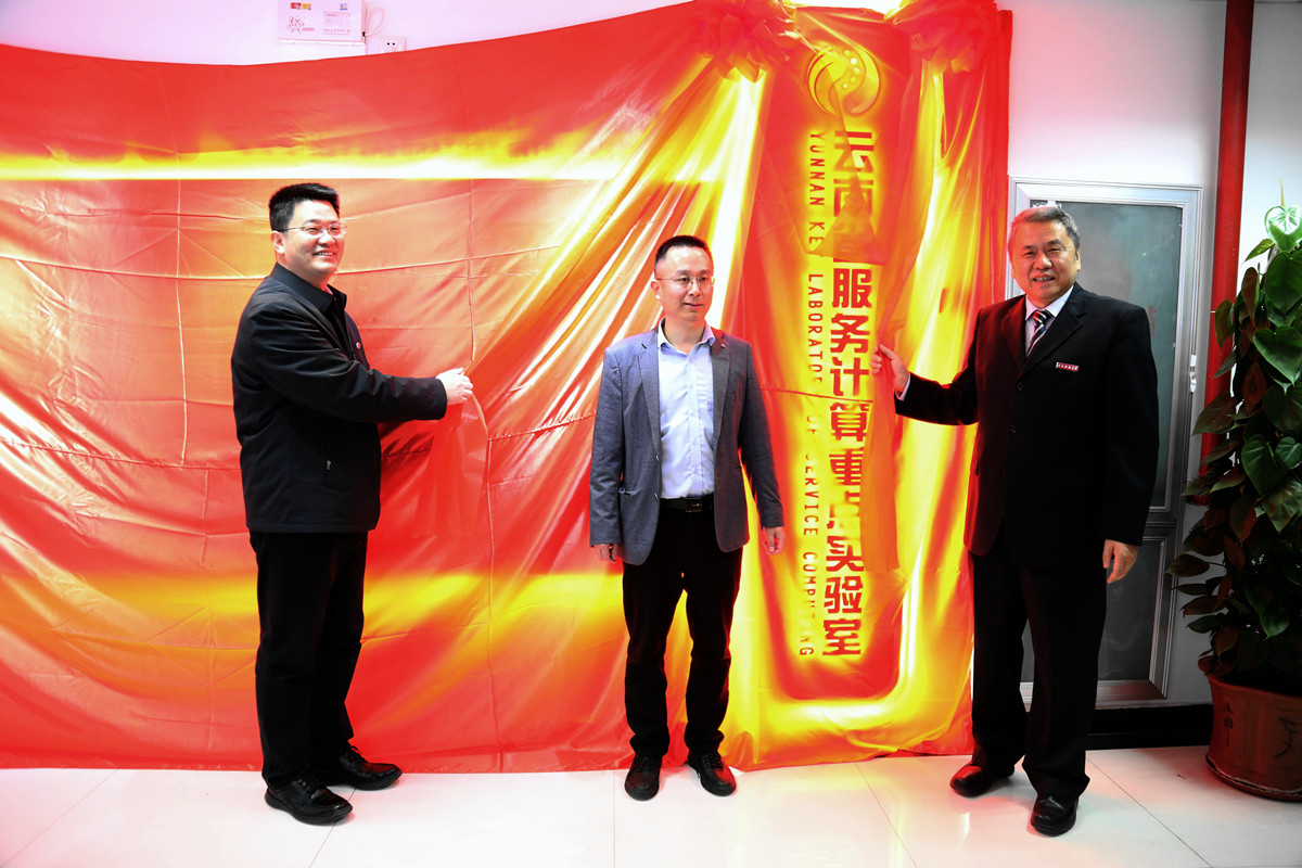1月30日,云南省服务计算重点实验室在bat365在线中国官网登录入口信息中心大楼举行揭牌仪式暨实验室建设专家咨询会。bat365在线中国官网登录入口党委副书记、校长王敏教授代表学校致辞并与校党委委员、副校长李正彪教授,重点实验室主任姜茸教授一起为重点实验室揭牌。