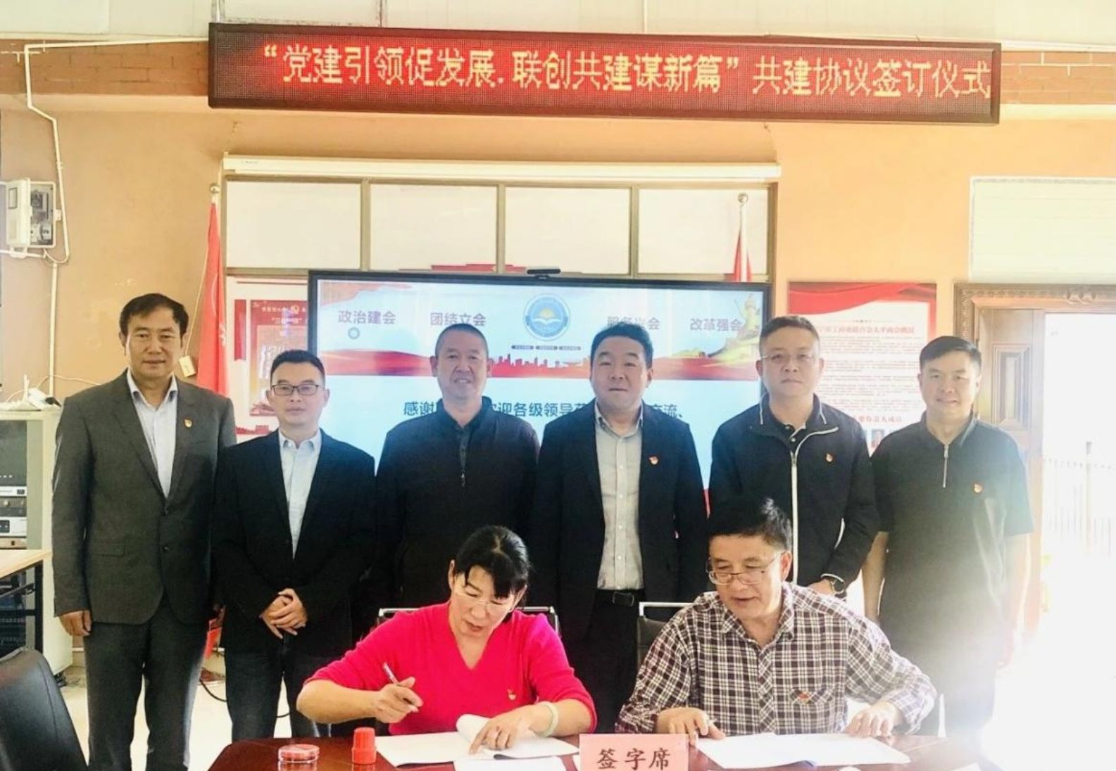 10月19日,bat365在线中国官网登录入口安宁校区各二级党组织与太平商会党支部联建共建签订仪式在安宁市太平商会举行。安宁校区管理办公室党支部书记翟勇、中华职业学院党委书记保伟、物流与管理工程学院党委书记宗锐、酒店管理学院党委副书记兼纪委书记李永祥、中华职业学院正处级组织员暨太平商会名誉会长林明辉参加签订仪式。