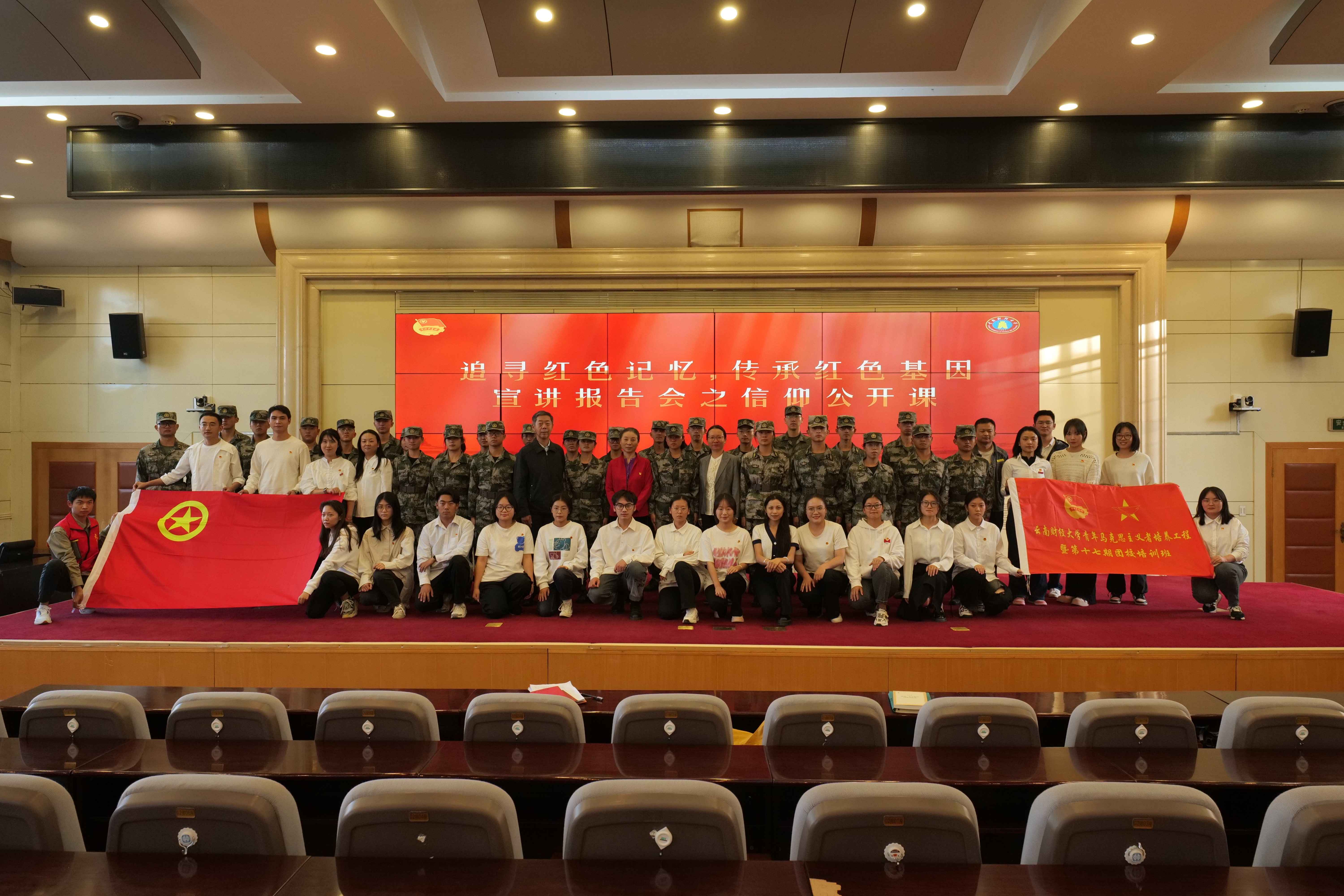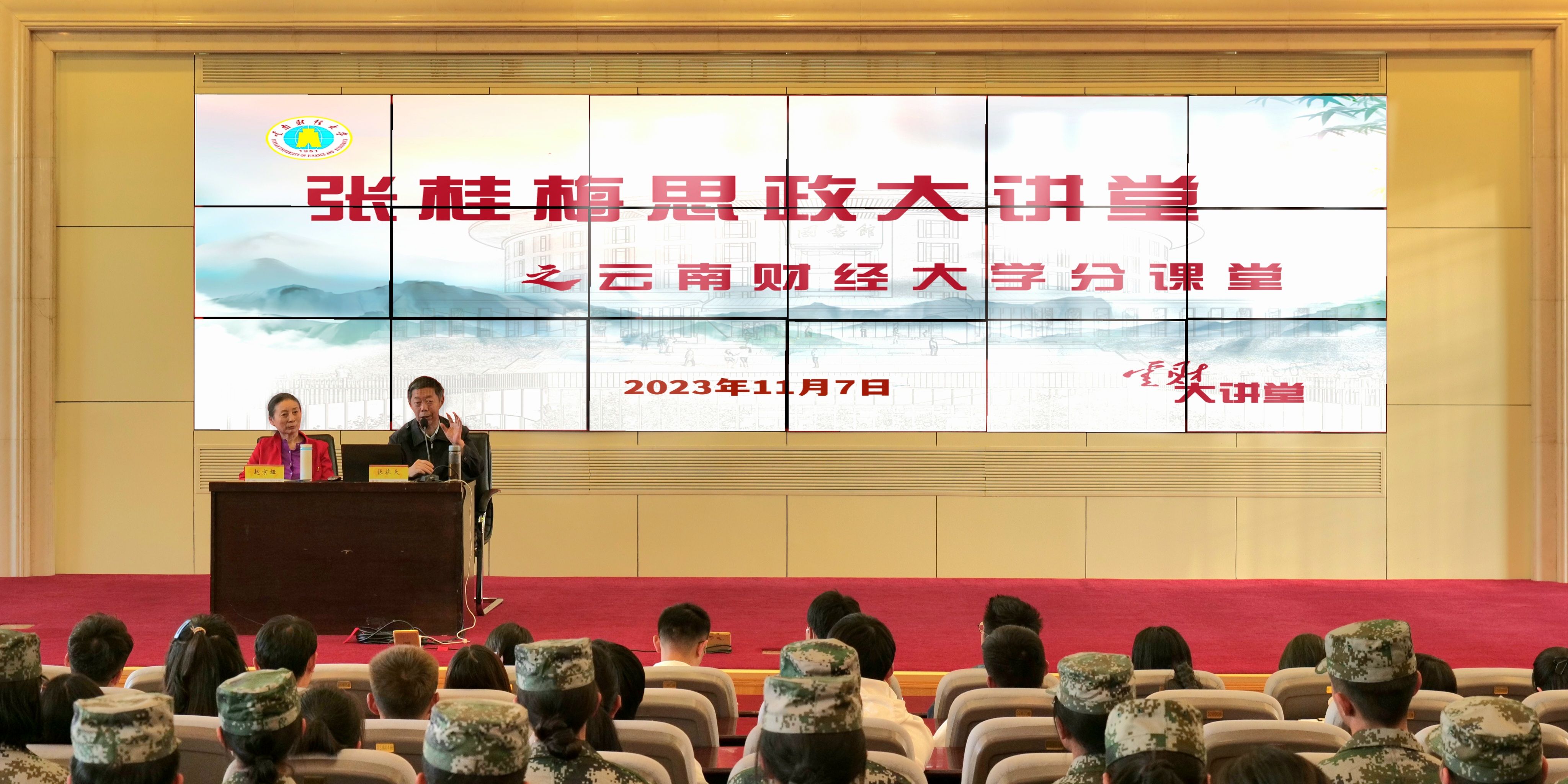 为教育引导广大青年学生传承红色基因,赓续红色血脉,11月7日下午,张桂梅思政大讲堂bat365在线中国官网登录入口分课堂第五讲在凌云楼国际学术报告厅举行。中央团校特聘教授、云南籍开国中将赵镕将军之女赵京娅,中央团校特聘教授、开国少将张蕴钰之子张旅天,以及宣讲团成员张婧菲老师应邀与云财青年分享了红色家风的传承故事。校党委委员、宣传部部长寸丽锋出席活动,校团委书记舒挺主持活动。