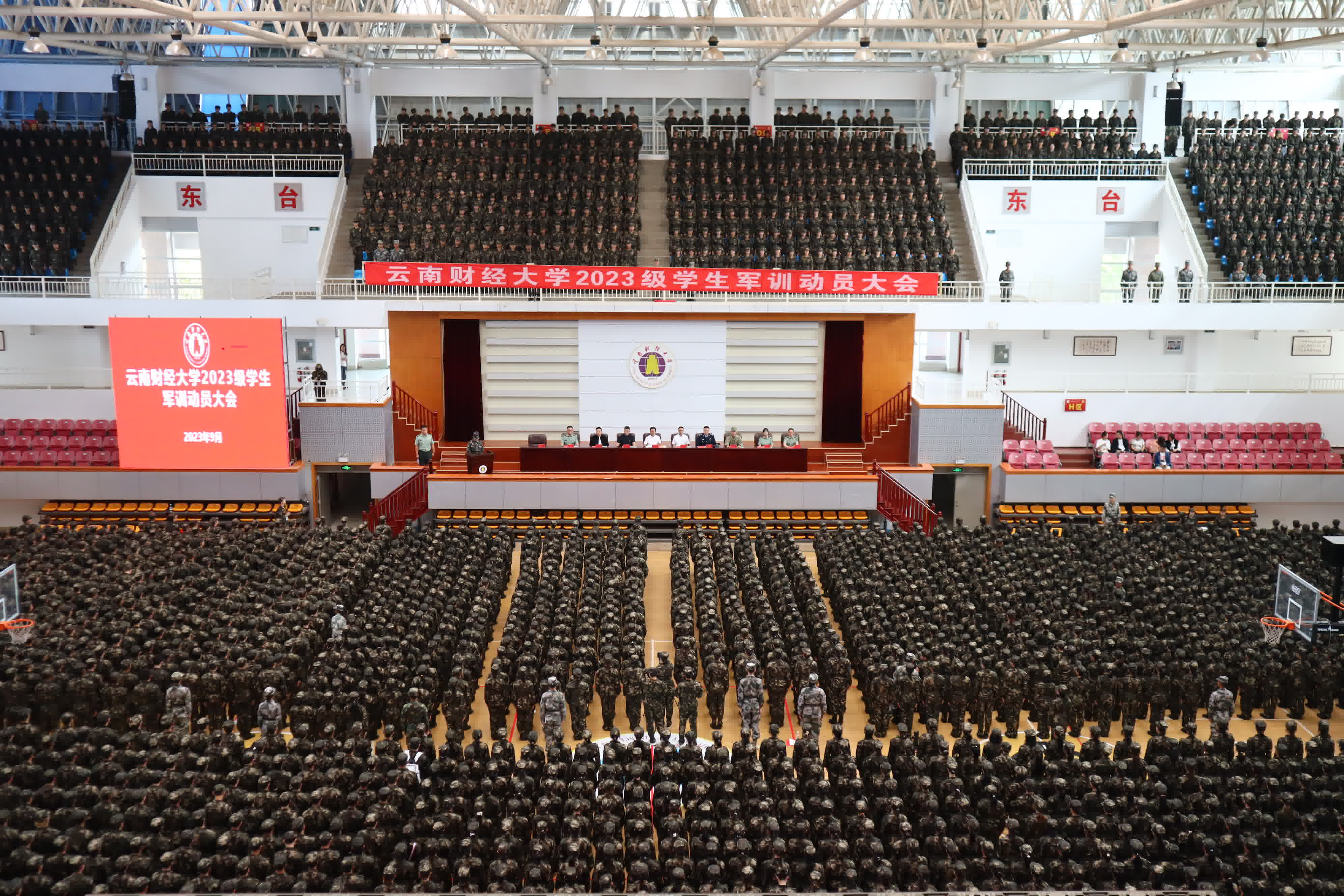 9月2日、3日,学校2023级学生军训动员大会分别在龙泉校区南院体育馆、安宁校区体育馆举行。学校党委副书记、军训工作领导小组组长施仲军,安宁市武装部军事科科长张德彦,中国人民解放军31632部队少校科长曾其彬,学校军训工作领导小组成员单位负责人、各学院分管学生工作负责人,以及承训教官、各学院带队教师、2023级全体参训学生参加动员大会。大会由学校武装部部长沙磊主持。