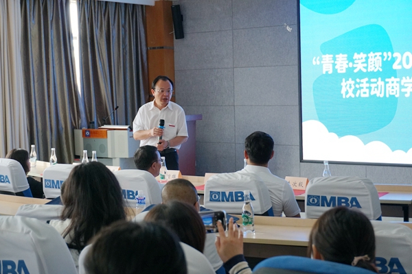 “开学典礼”上,学校党委委员、副校长余怒涛对各位校友的到来表示热烈欢迎并致辞,校友工作办公室主任章玲主持大会。