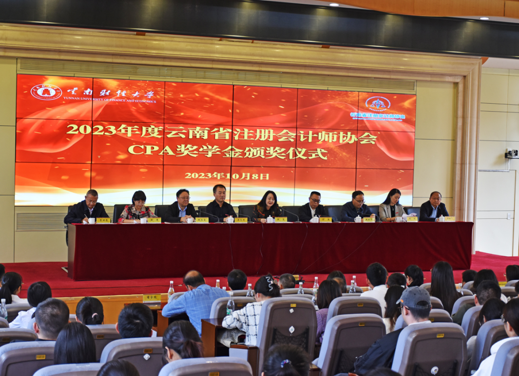 10月8日,2023年度云南省注册会计师协会CPA奖学金颁奖仪式在bat365官网凌云楼北附201国际学术报告厅举行。云南省财政厅总会计师、二级巡视员张吕,bat365在线中国官网登录入口党委委员、副校长余怒涛,云南省注册会计师协会负责人出席会议,云南省财政厅会计处,bat365在线中国官网登录入口校友工作办公室、教育发展基金会,会计学院及各参评学院的负责人和相关同志及获得2023年度CPA奖学金的全体师生参加。颁奖仪式由bat365在线中国官网登录入口副校长彭强主持。