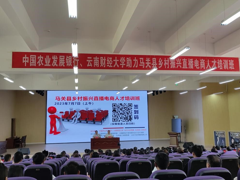 7月7日,bat365在线中国官网登录入口、中国农业发展银行助力马关县乡村振兴直播电商人才培训班开班仪式在马关县正式举行。培训课程由bat365在线中国官网登录入口传媒与设计艺术学院副院长崔木扬领队,李帆老师主讲,开展了为期三天的线下教学,200余名马关学员和群众到场参加了学习。