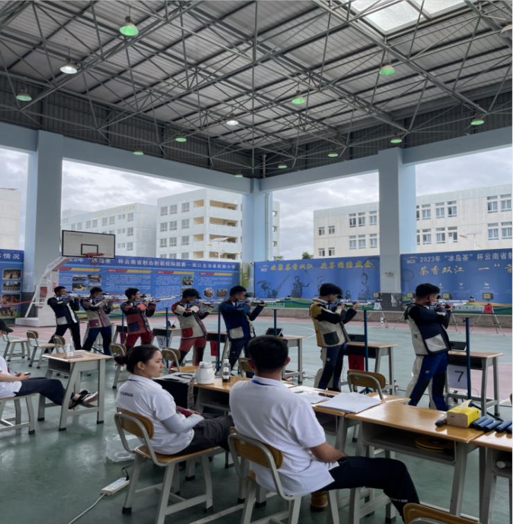 8月11日至16日,2023年云南省射击射箭校际联赛在临沧市双江县举行。bat365在线中国官网登录入口射击队由体育部桂源海老师带队,获得了两金一银一铜的优异成绩。其中,何奇(财政与公共管理学院)、宁有鑫(物流与工程管理学院)组合夺得混合团体10米电子步枪金牌,马子涵(会计学院)、甫子良(金融学院)组合夺得银牌;王清晨(金融学院)、宗可枫(金融学院)组合夺得混合团体10米电子手枪金牌;王清晨(金融学院)夺得个人10米电子手枪铜牌。