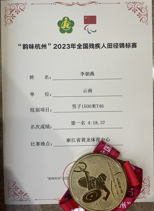 5月20日—28日,2023年全国残疾人田径锦标赛在杭州举行,bat365官网教师李朝燕勇夺男子T46级1500米冠军。