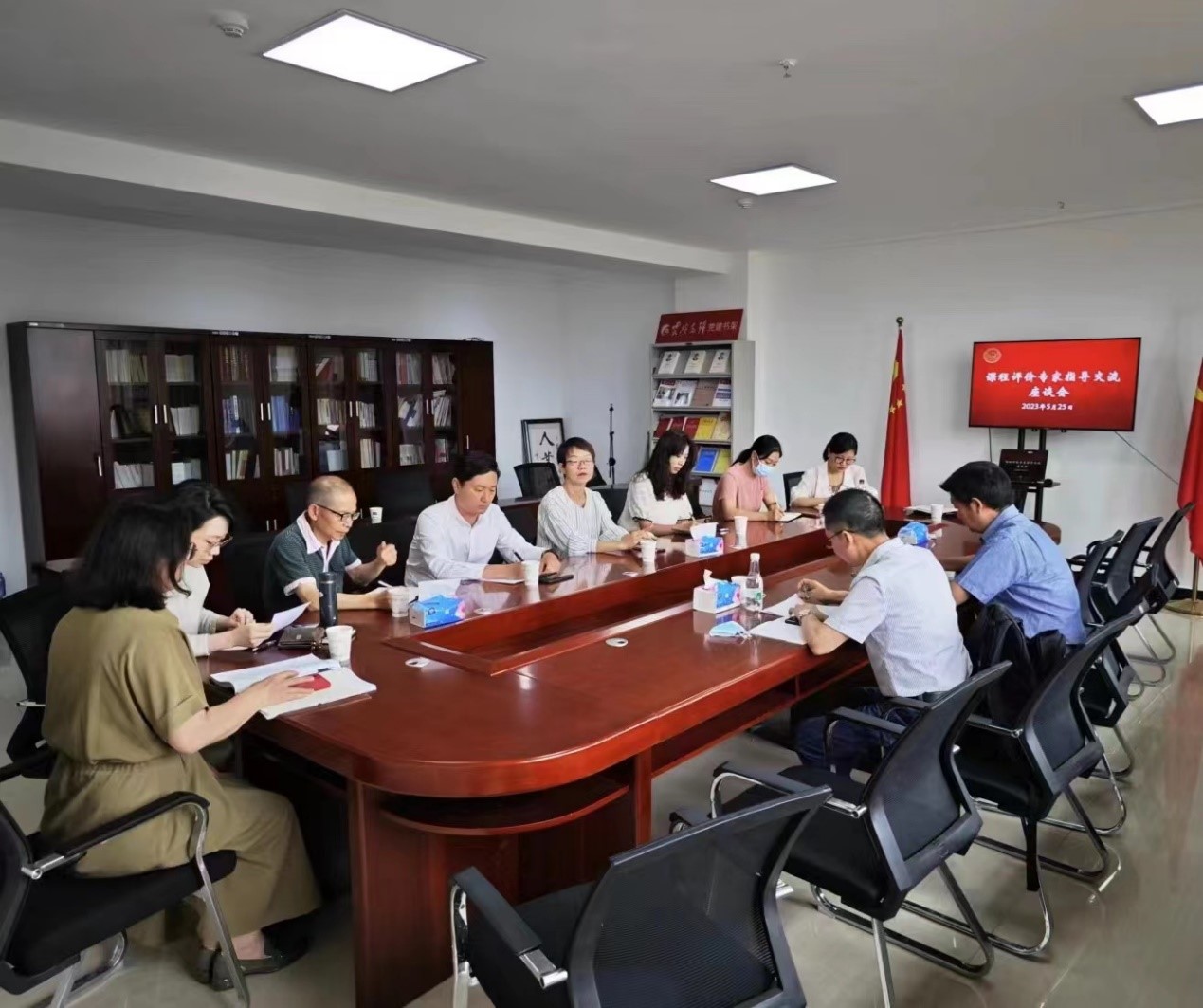 5月25日上午,何伟福教授还与课程评价中心举行了座谈,就课程评价业务工作进行指导交流,并介绍了贵州财经大学教学改革的激励机制、学生评教、课程建设等情况。