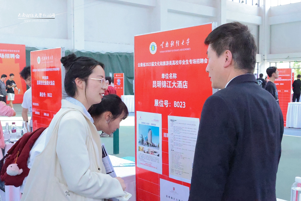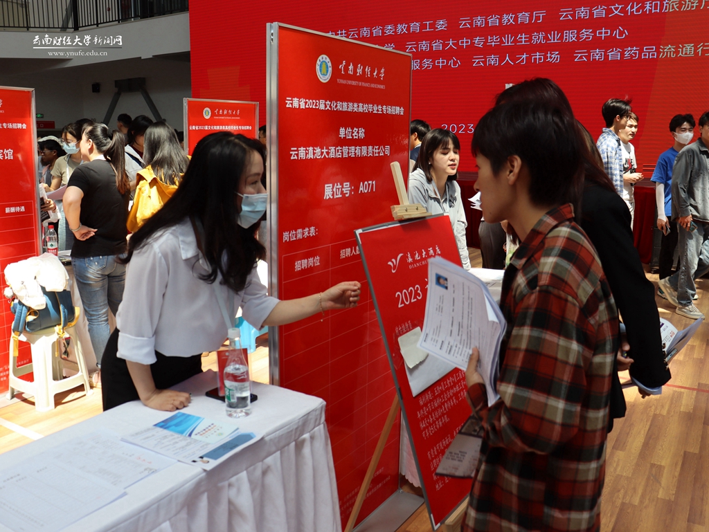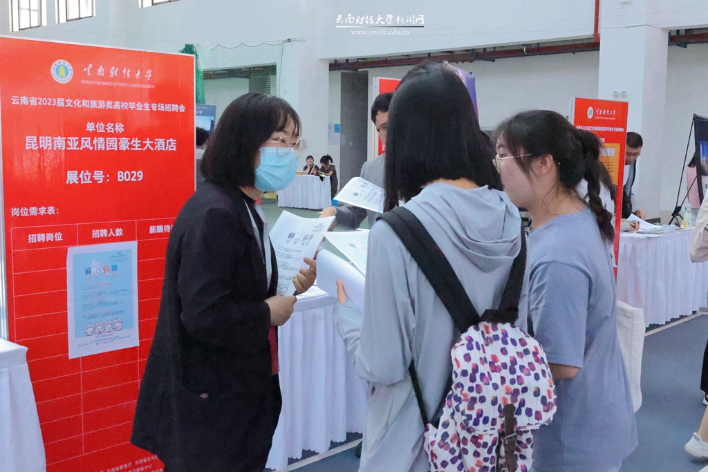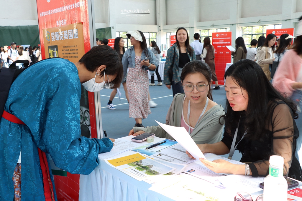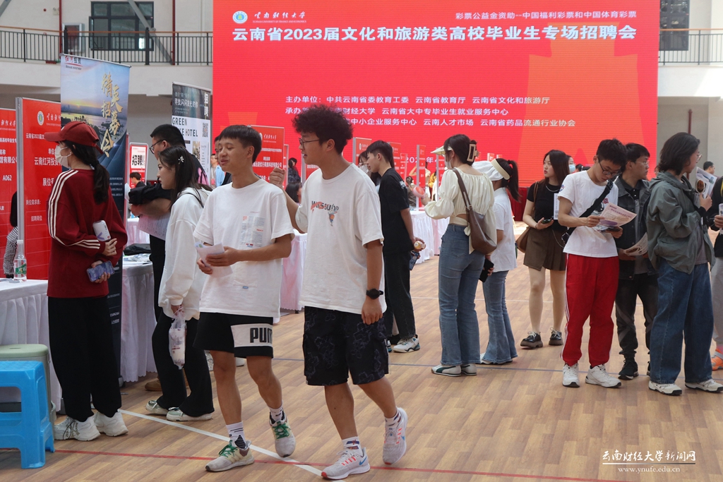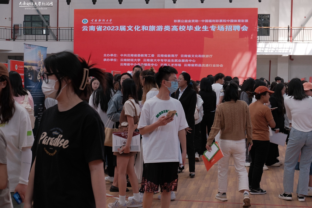 4月13日下午,云南省2023届文化和旅游类高校毕业生专场招聘会在bat365在线中国官网登录入口安宁校区举行。此次招聘会由云南省委教育工委、省教育厅、省文化和旅游厅主办,bat365在线中国官网登录入口、云南省大中专毕业生就业服务中心、云南省人才市场和云南省药品流通协会承办。来自bat365在线中国官网登录入口、西南林业大学、云南省旅游职业学院等院校的4500余名学生参加招聘会,投递简历6600余份。