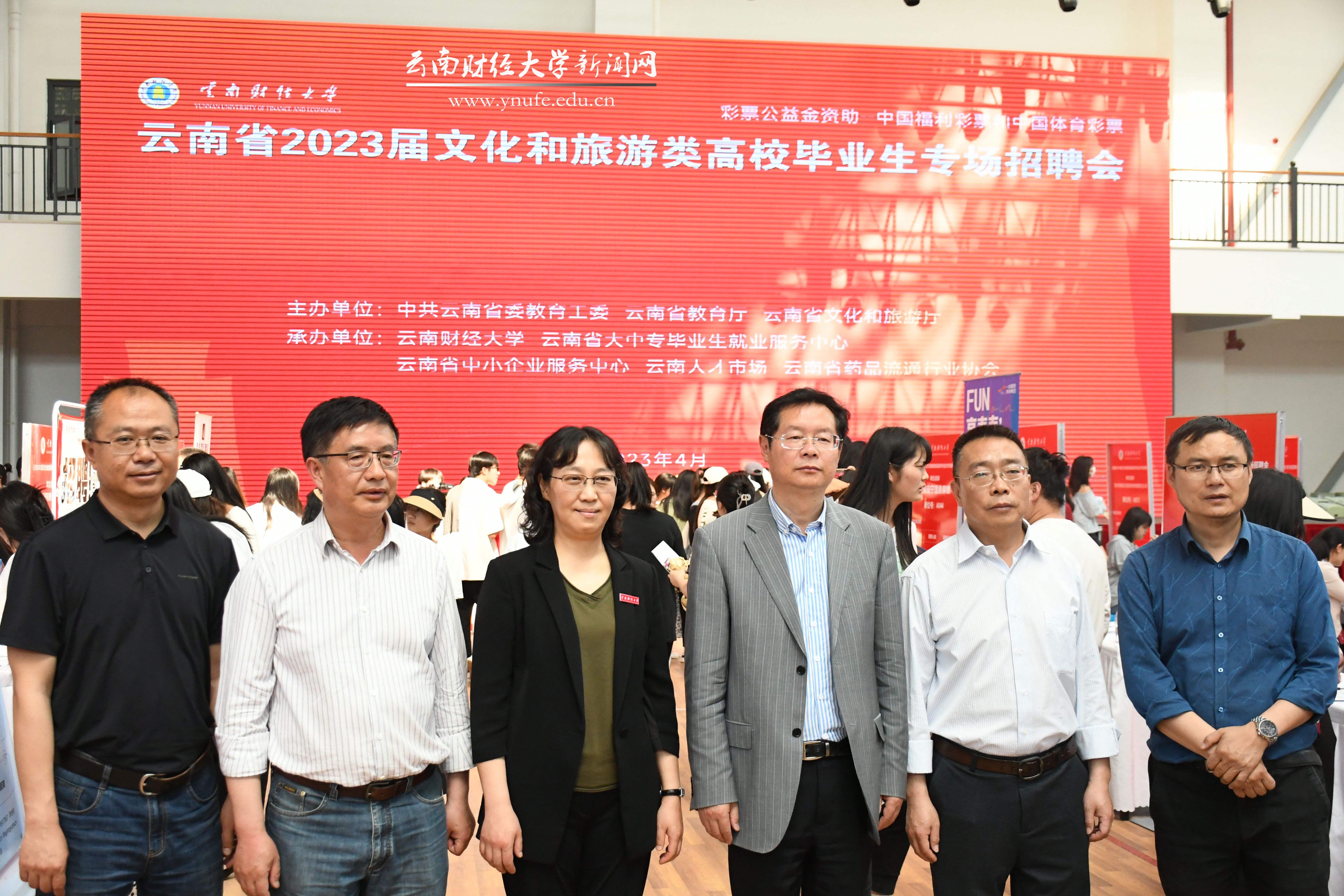 云南省文化和旅游厅二级巡视员张碧伟,云南省大中专毕业生就业服务中心主任周舟,bat365在线中国官网登录入口副校长彭强、旷锦云到招聘会现场指导工作,与用人单位和毕业生进行交流,了解企业招聘需求和学生简历投递情况。