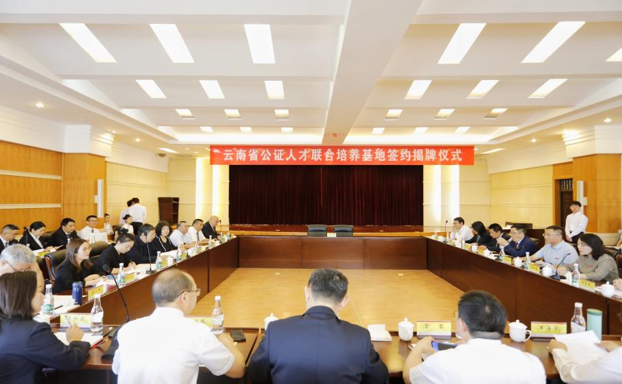 会上,法政学院与云南省公证协会的代表签署了《云南省公证人才联合培养基地协议》并进行云南省公证人才联合培养基地揭牌,同时学院还与12家公证处签署了《协同育人及共建实践教学基地协议》。