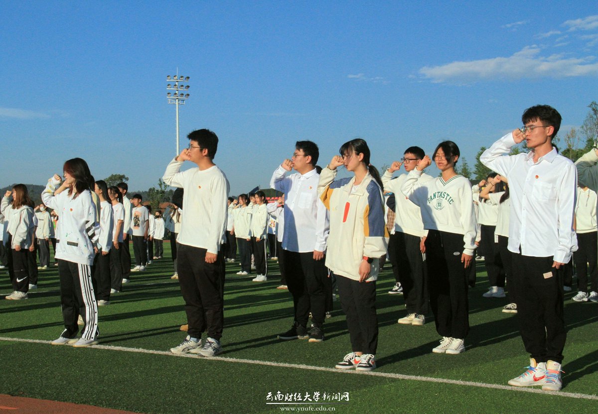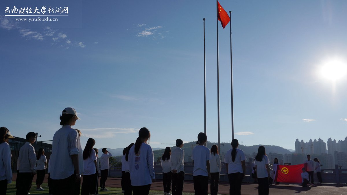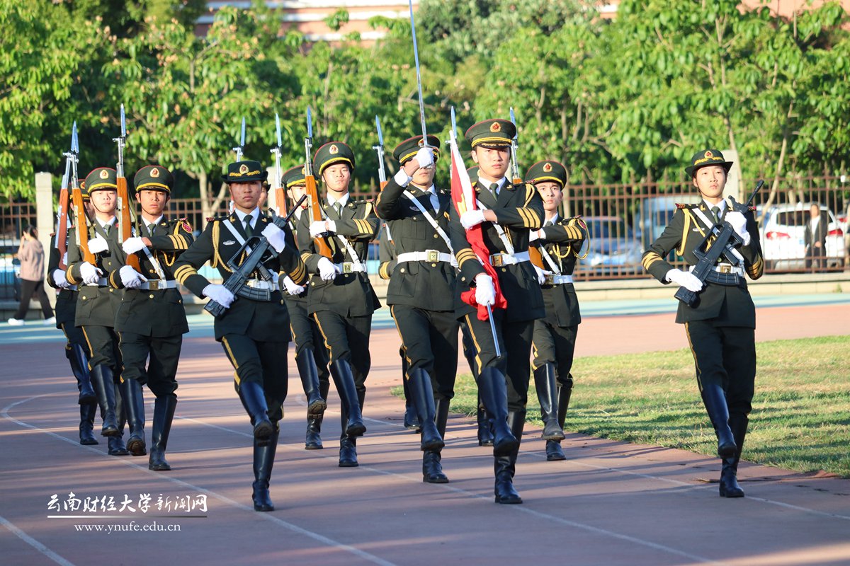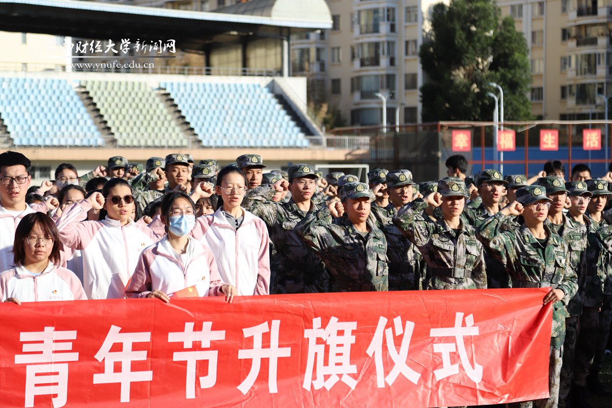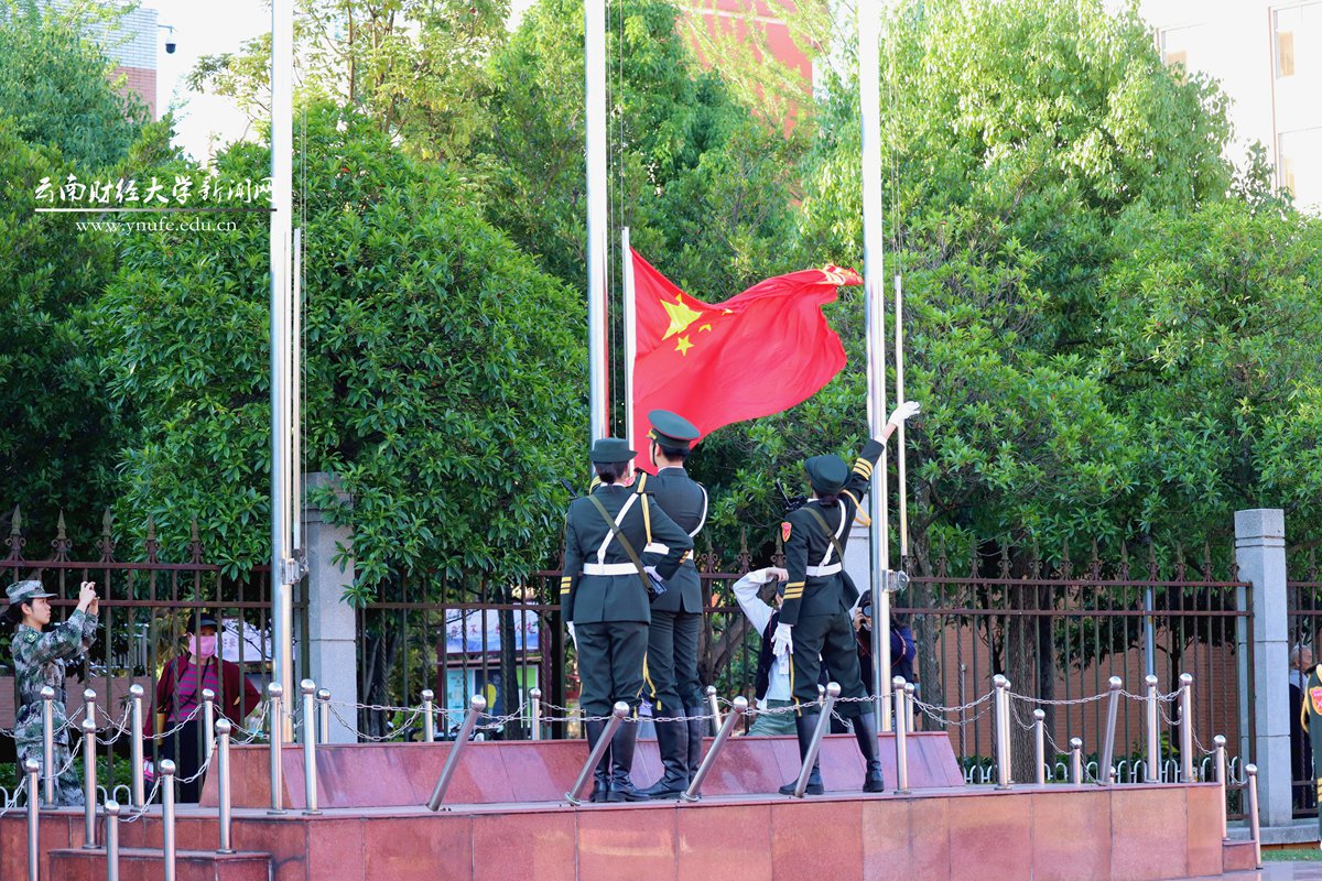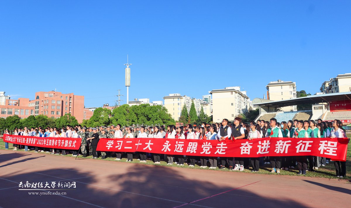 在第74个五四青年节的清晨,为弘扬五四精神,号召全体云财青年坚定不移听党话、跟党走,5月4日7:30,学校在龙泉路校区和安宁校区同时举行“学习二十大,永远跟党走,奋进新征程”主题升旗仪式。校党委委员、宣传部部长寸丽锋,全体专职团干部,学生代表和国防后备连共600余名师生参加。