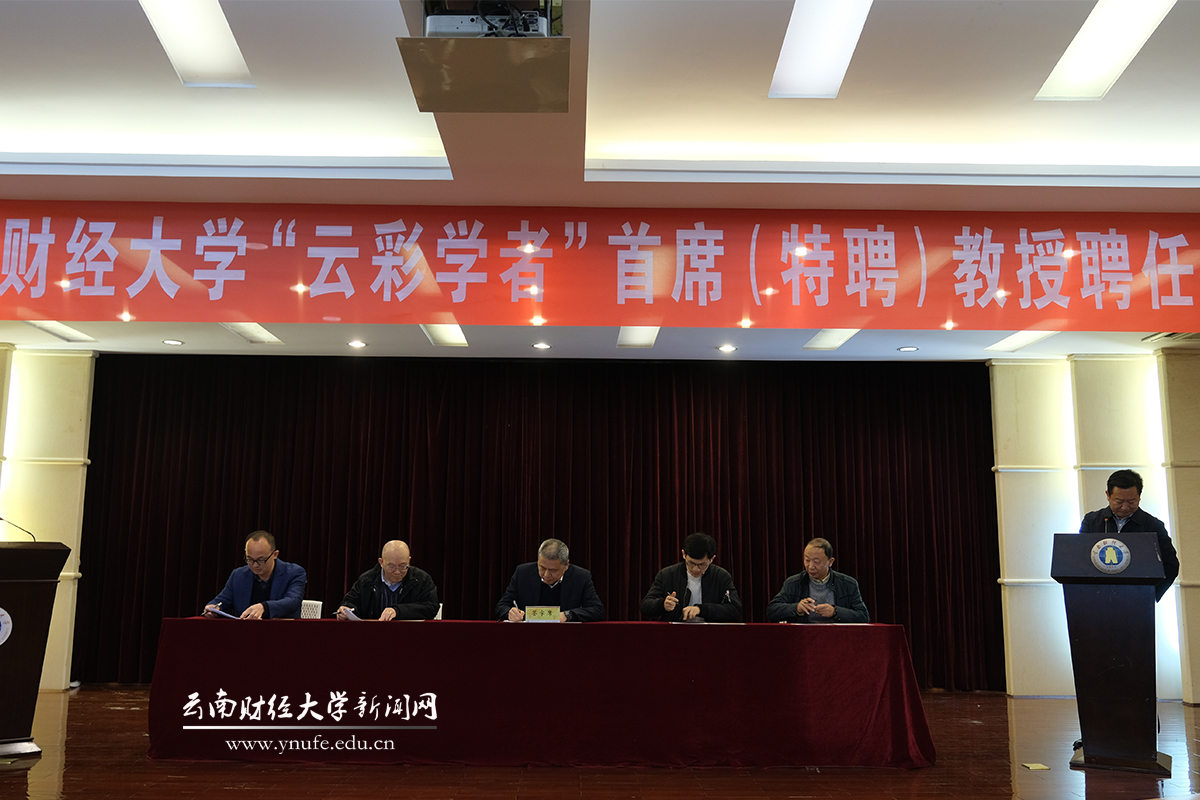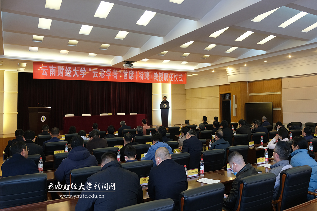 施仲军宣读“云彩学者”首席(特聘)教授聘任名单。他指出,新聘任的“云彩学者”要切实发挥好人才的领军、示范、带头作用,把个人的教学科研和学科专业建设紧密地结合起来,主动融入和服务好学校、地方经济社会建设发展。各部门要大力宣传落实好学校各项人才政策,全力加强学校人才队伍建设,努力建设一支政治素质过硬、业务能力精湛、育人水平高超、具有卓越追求的一流人才队伍,为建设具有鲜明办学特色的区域高水平财经大学提供坚实的人才支撑和智力保证。