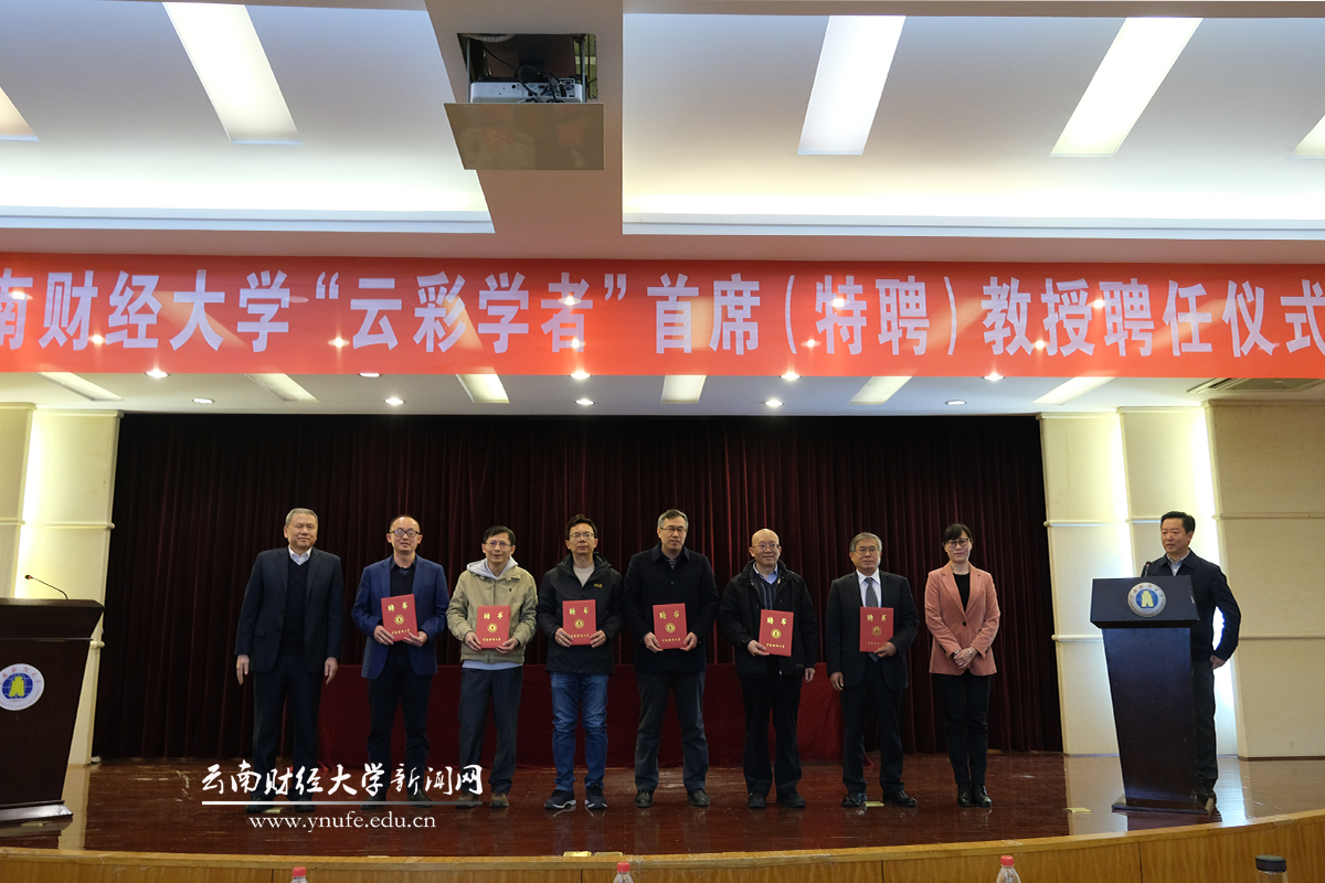 在家校领导、党委委员,全体受聘“云彩学者”首席(特聘)教授,党委人才工作领导小组成员单位和各学院负责人参加聘任仪式。