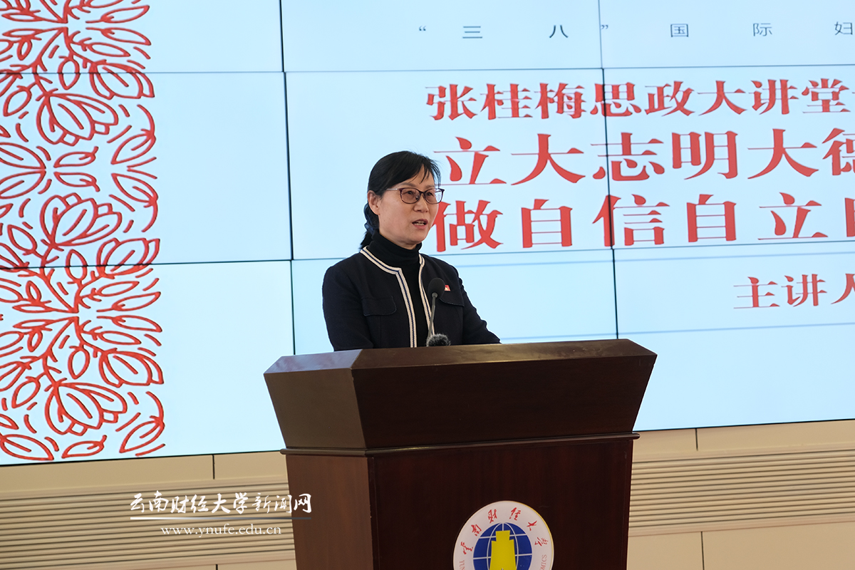 “希望大家能够时常想起今天这堂课,记住时代楷模张桂梅老师,记住巾帼工匠孙梅老师,记住英雄母亲徐娟老师,记住自信自立自强的青年榜样肖云迪同学……让我们一起扎根沃土、向阳而生!”3月10日中午,一堂生动质朴又感人至深的“开学第一课”在bat365在线中国官网登录入口凌云楼国际学术报告厅举行。bat365在线中国官网登录入口党委书记王建颖、云南建投机械制造安装工程有限公司女职工创新工作室负责人孙梅和bat365在线中国官网登录入口信息学院徐娟老师应邀作为主讲,以“巾帼展风采 铿锵绽芳华——深入学习宣传贯彻党的二十大精神”为主题,通过主课堂与分课堂、线上线下、校内校外相结合的方式,动情阐释“建功新时代的巾帼力量”。