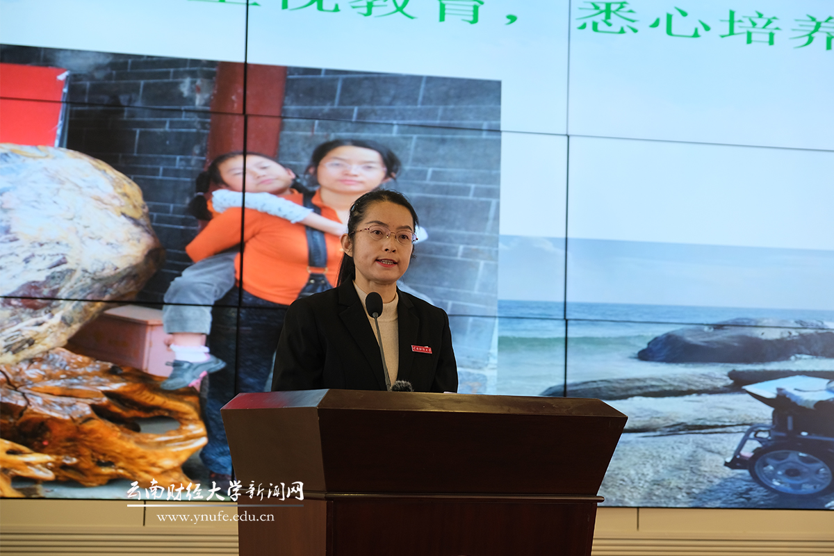 “我们坚持让有信仰的人讲信仰,以故事阐释理论、以理论升华故事,有机融合教育系统和各行各业先进模范人物事迹,用身边人身边事教育感染人,深入挖掘新时代伟大实践中的育人富矿,让‘张桂梅思政大讲堂︐之花开遍云岭大地、根植师生心间,打造思政‘金课︐。”王建颖对主题宣讲的意义和特色进行总结,并从三个方面对云财学子提出希望和要求: