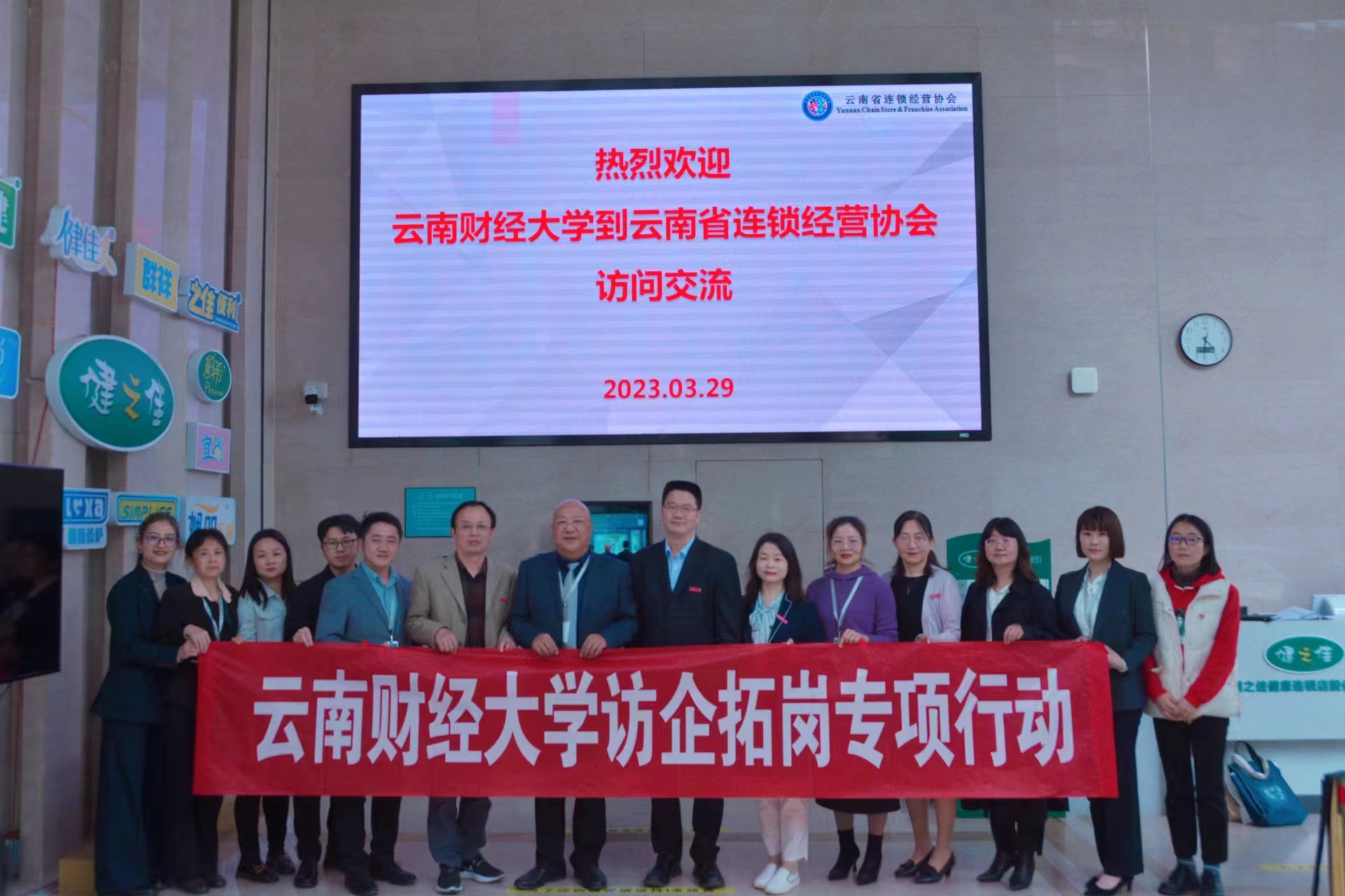 为推进毕业生就业创业工作,寻求更多就业岗位和机会,3月29日下午,校党委委员、副校长李正彪带队赴健之佳医药连锁集团股份有限公司和云南省连锁经营协会进行走访交流,就深化校企合作、促进毕业生实习就业、建立实习实训基地等事宜开展座谈。