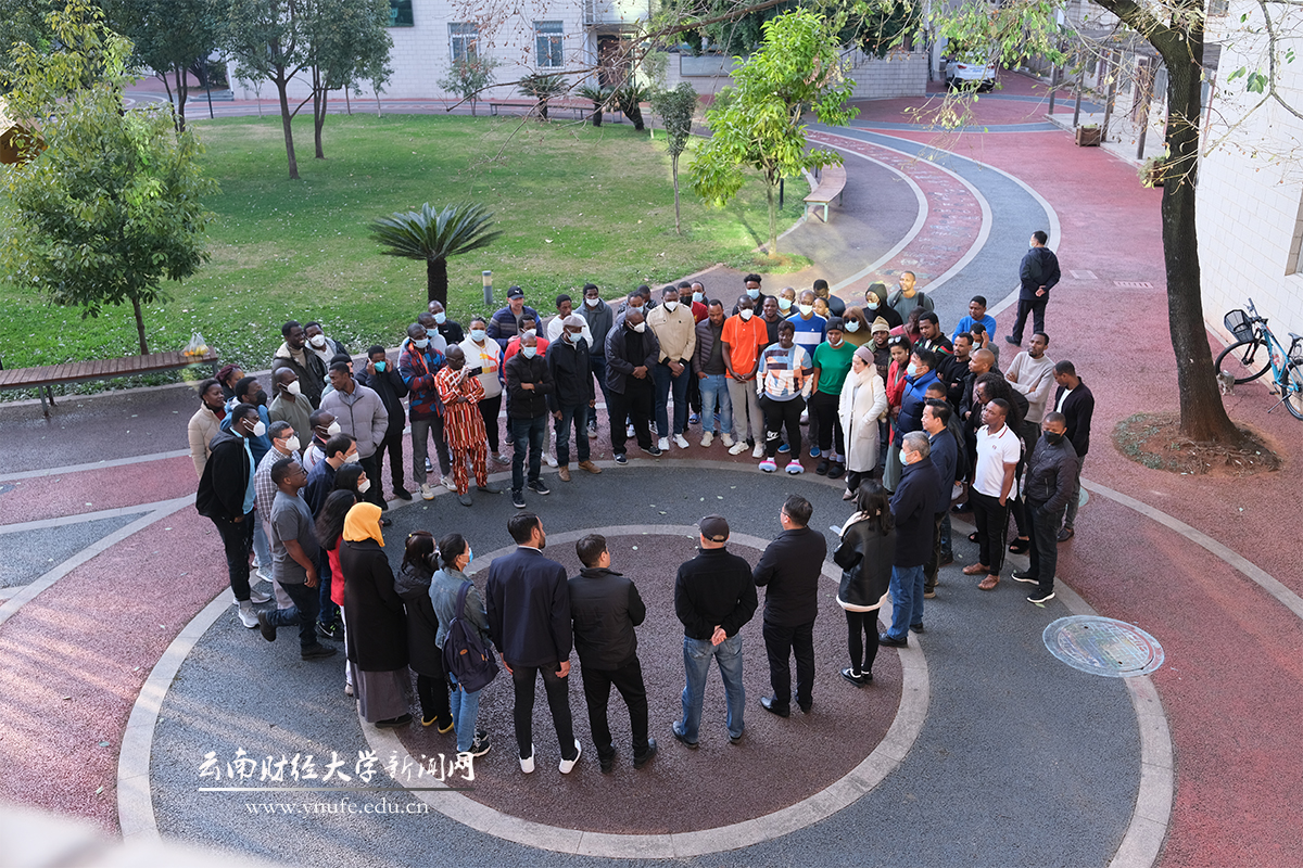 现场气氛喜庆热烈、暖意融融,师生围站一圈互致新春祝福,校领导和海外学院负责人共同为国际留学生送上新春慰问品,并与大家合影留念。