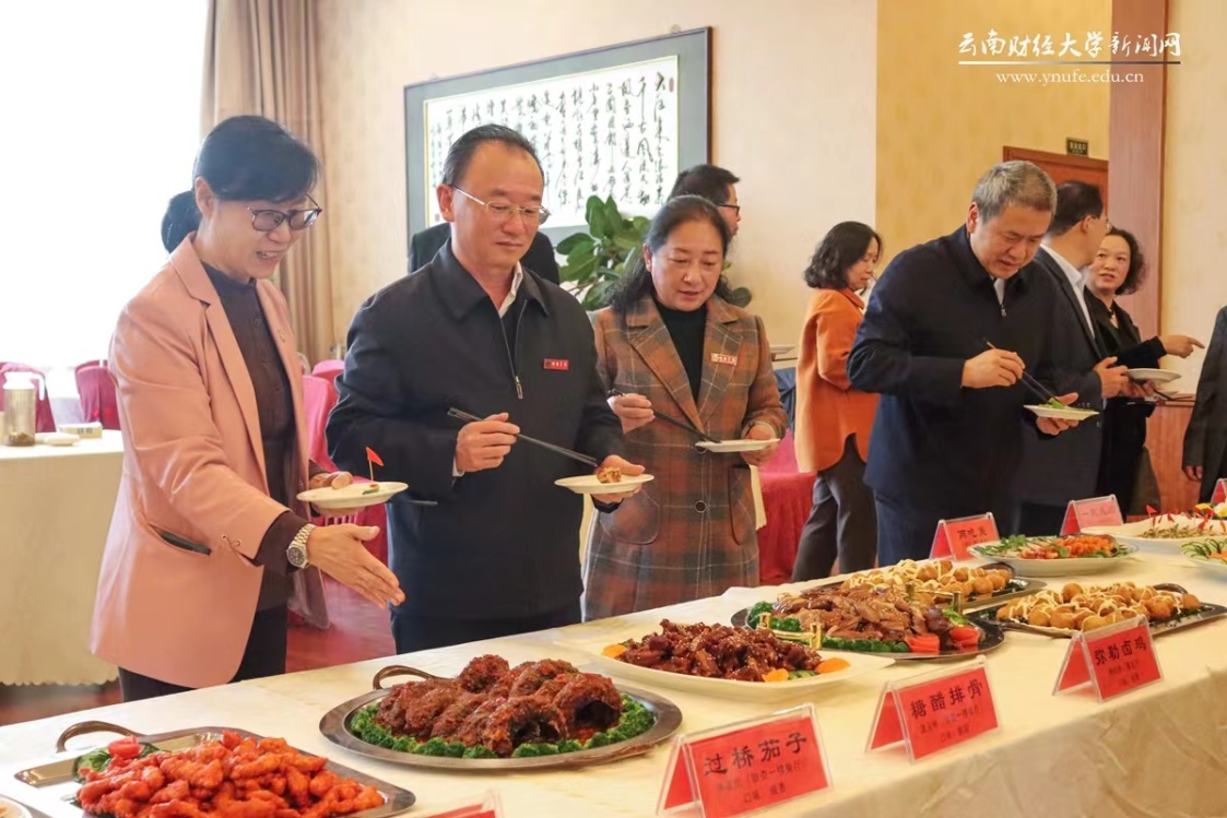 13日下午,师生代表60余人参加了在海棠餐厅举办的新菜品发布会。本次发布会共推出26道由校内12家餐厅倾情制作的新菜品,师生评委们认真品尝并对菜品逐一打分。校党委书记王建颖,校党委副书记、校长王敏,副校长彭强、余怒涛、颜明,以及来访bat365官网签署合作协议的昭通学院党委书记陈红、校长李若青等一行也受邀参加了活动。