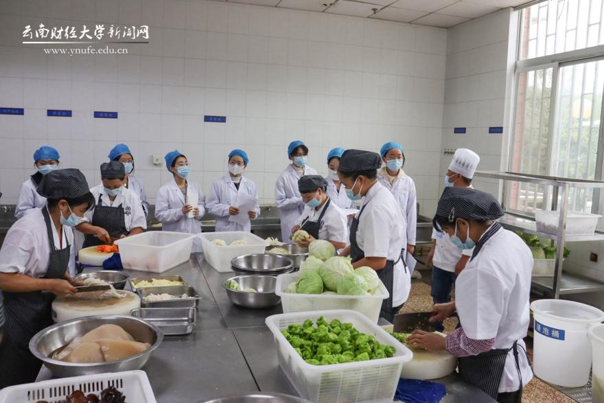 精肥参半的粉蒸肉、外酥里嫩的酱香饼、光泽似橘黄玛瑙的糖醋排骨、香气扑鼻的梅菜扣肉、油而不腻的破酥包……一道道让人垂涎欲滴的美食如何从采购到端上食堂的餐桌?在后厨一线,师生代表“零距离”了解原材料采购到成品供应的全过程,了解“舌尖上的云财”保质保量保安全的“独门秘笈”……