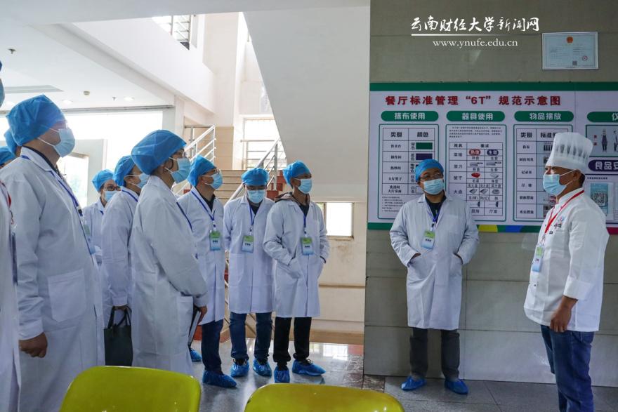 14日上午,师生代表深入食堂后厨一线,围绕食堂工作人员管理、食堂环境卫生管理、食品制作流程三个方面“零距离”了解食堂人员管理、原材料采购、菜品加工制作、成品供应全过程。在库房,库管员详细介绍了原材料招标采购及进入食堂的流程。在食品加工区,师生代表看到了蔬菜、海产品、肉类等专门的清洗池和处理区域,砧板按荤素生熟严格区分,砧板、菜刀实行专人专用专管。为保证有效去除蔬菜农残,食堂还配置了专门去除农残的浸泡池,并对浸泡时长有明确要求。在保鲜区,冰箱冰柜一应俱全,以保证食材存储新鲜卫生。在冷菜区,设置紫光灯对菜品用紫外线消毒。在餐具清洁区,餐具严格按照“一冲二洗三清四保洁五消毒”步骤进行清洗消毒……食堂均严格按照“6T”进行管理,确保食品安全卫生和健康营养。