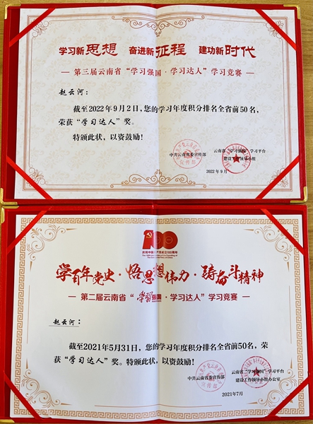 近日,在第三届云南省“学习强国·学习达人”学习竞赛中,bat365官网赵云河老师再次荣获“学习达人”奖,此前,赵云河在第二届竞赛中获得该荣誉。