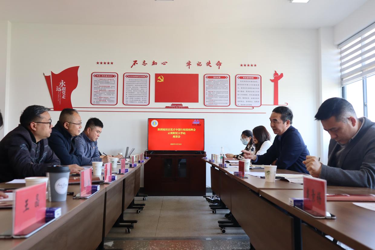 招聘会期间,深圳市福田区人力资源局还与学校相关部门、学院举行了座谈,双方就如何做好人才招聘服务、加强沟通合作、形成长效机制等问题进行了深入交流和探讨。深圳市福田区人力资源局处长刘东升、副处长罗晓辉、副主任冯少梅、戴景锡、郑蕴璨参加座谈,学校招生与职业发展中心主任霍嘉军、副主任李伟,经济学院党委副书记杨雯、金融学院党委副书记汪薇萍、商学院党委副书记蒋见证、统计与数学学院党委副书记石晓晶、国际语言文化学院党委副书记俞虹、国际工商学院党委副书记王晶及部分辅导员参加会议。