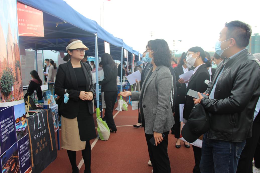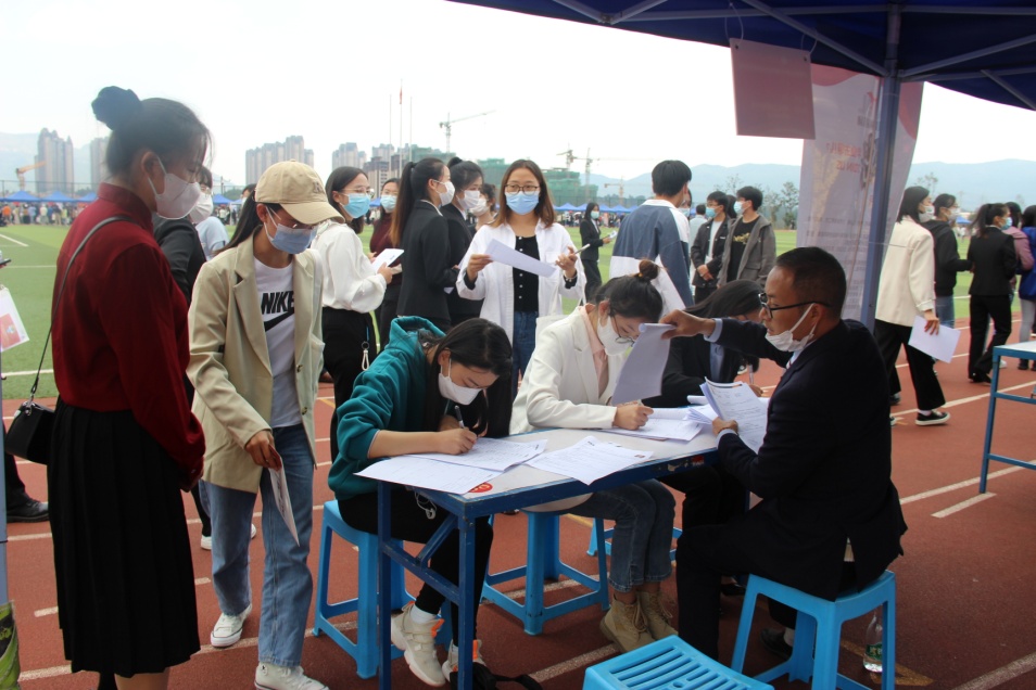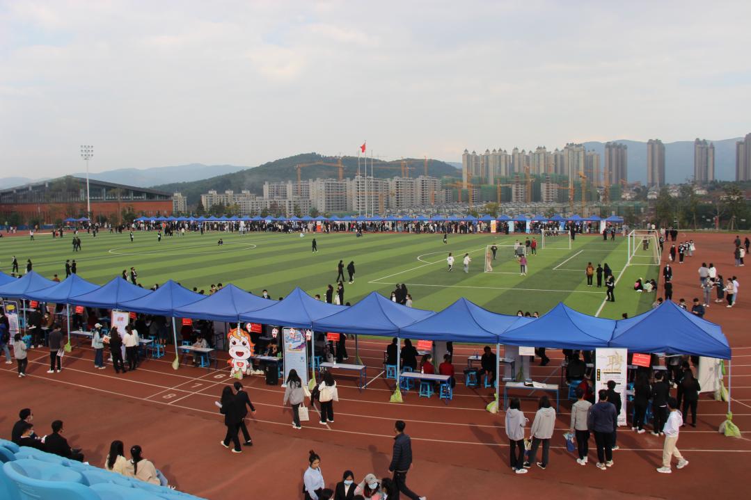 11月4日下午,由学校主办、中华职业学院承办的bat365在线中国官网登录入口2023届毕业生秋季双选洽谈会(安宁校区)在安宁校区足球场举行。中国邮政云南分公司、联云集团、天健会计师事务所、麦当劳云南分公司等省内外113家用人单位参会,提供370余个岗位,4062个用工人数。3500余名学生到现场参加招聘会。
