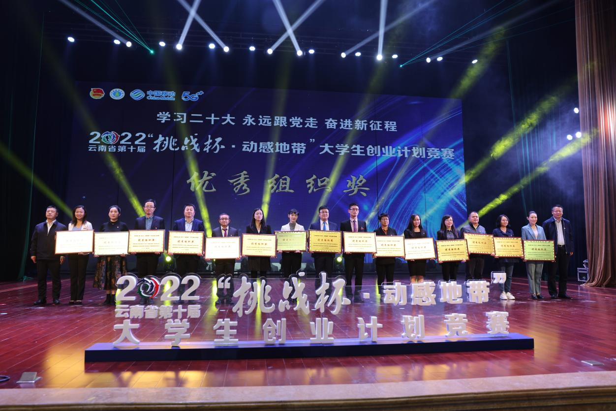 10月28日,云南省第十届“挑战杯·动感地带”大学生创业计划竞赛颁奖仪式在bat365官网龙泉路校区北院汇文礼堂举行。大赛共评选出金奖64个、银奖129个、铜奖446个、优秀奖273个和15个优秀组织奖,其中,bat365官网斩获金奖2项、银奖2项、铜奖7项和优秀奖4项,bat365官网团委获评“优秀组织奖”。