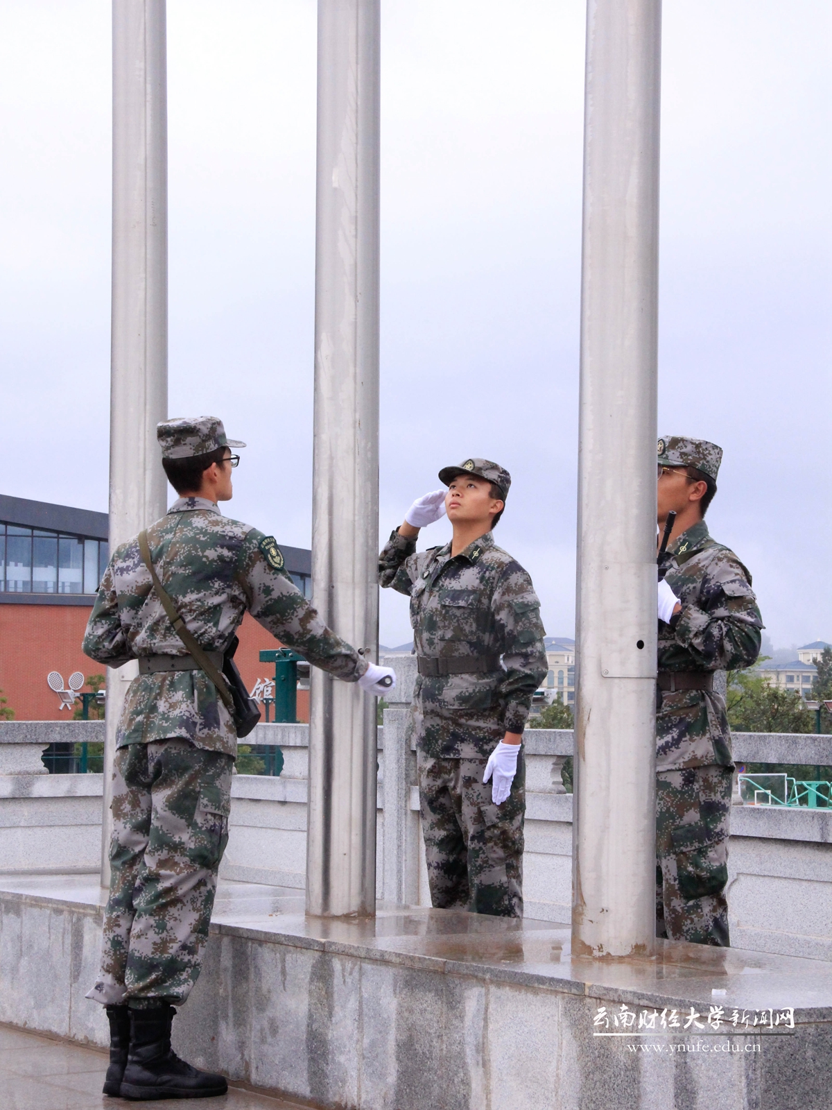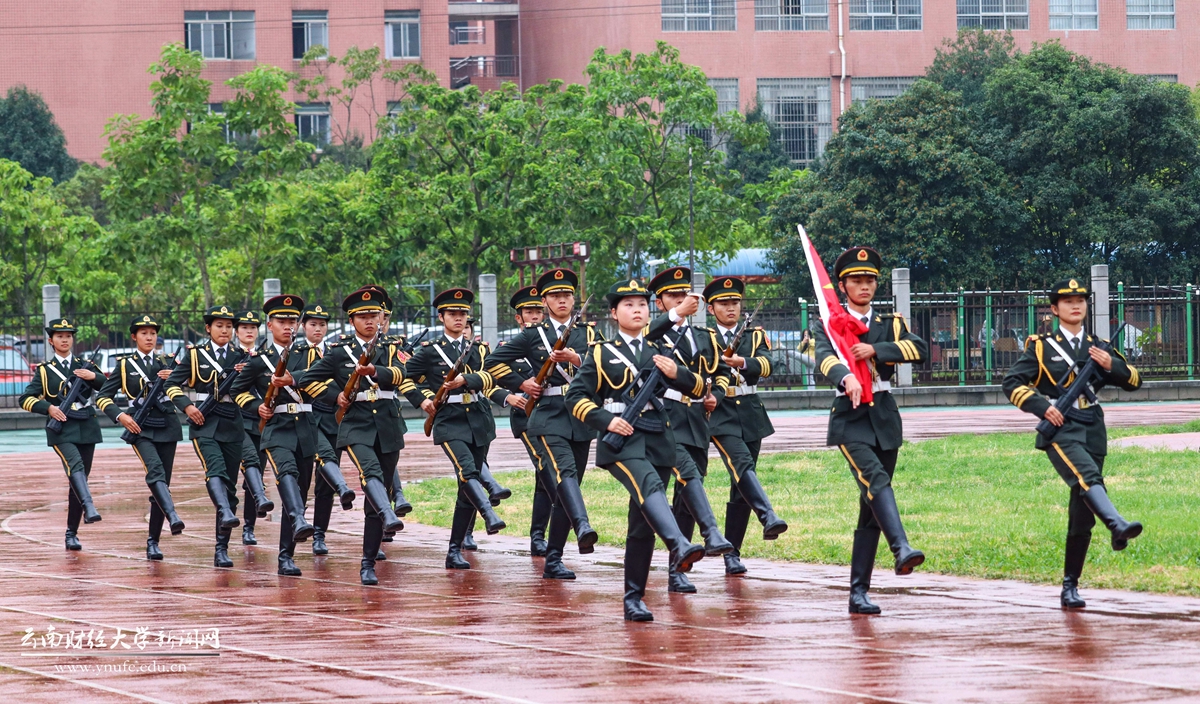 为了这次国庆的升旗仪式,国旗护卫队的同学们三天前就开始在操场上演习,只为确保国庆当天手中的国旗能顺利升起。即使早晨的天空飘着小雨,也阻挡不了国旗护卫队的同学们内心的热情。“这是我第二次作为国旗护卫队的一员来参加国庆升旗仪式,看到我们护送的国旗在操场上空随风飘扬,我内心的自豪感油然而生。”经济学院商务20-1的白雪佳同学说。