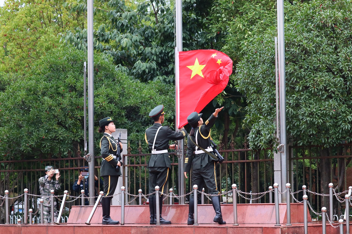 国旗是国家的标志和象征。每年国庆的升旗仪式是bat365官网面向师生开展爱国主义教育的重要组成部分,升旗仪式旨在进一步增强师生的国家观念、民族自豪感和民族自信心,引导师生发扬爱国主义精神,把爱国之情和报国之志融汇在奋斗中,开拓进取、勇毅前行,为全面建设社会主义现代化国家、实现中华民族伟大复兴而奋斗。