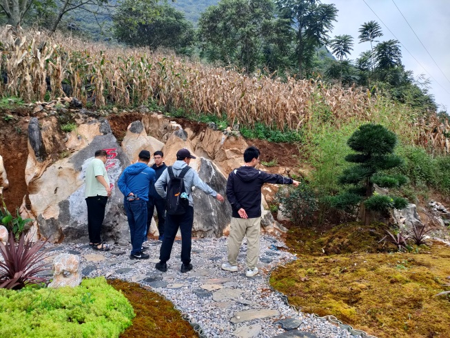 文山州马关县坡脚镇所辖各村地处喀斯特岩溶发育区,石头资源丰富多样,怪石嶙峋栩栩如生的山石随处可见,形成自然天成的生态景观。当地人口多为苗族、壮族及汉族,风俗文化多元一体,相互交融。因地理环境和资源禀赋等条件的限制,农业生产结构相对单一,经济发展有待加强,自脱贫攻坚取得胜利之后,仍有相当数量的农户存在返贫风险。为此,驻村队始终秉持就地取材、因村施策的理念,通过传播和保护中华优秀传统文化,凝聚农民群众精神力量,以社会主义先进文化孕育农村社会良好风尚,用红色文化激发农民群众奋斗热情。接下来,驻村工作队还将倾力打造集休闲、健身、游览于一体的生态人文景观——“仁丘”,助推驻地绿美乡村建设。