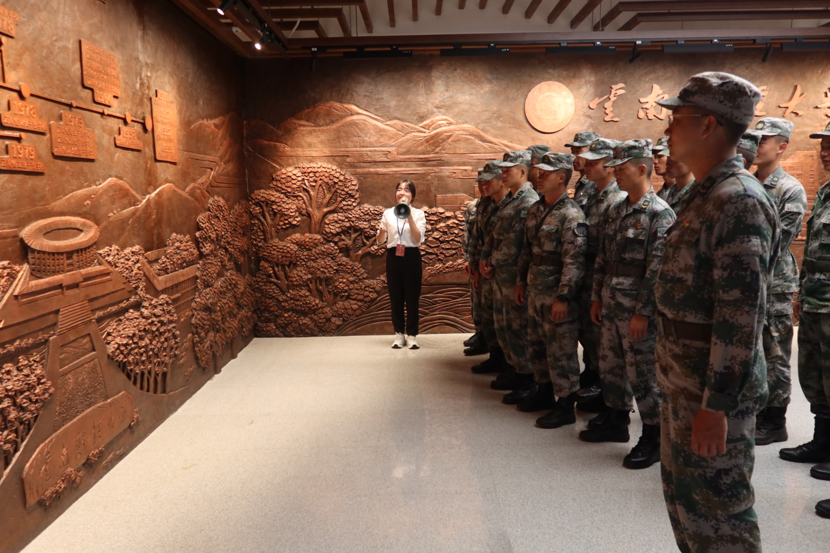 活动双方参观了bat365在线中国官网登录入口校史馆、锺正山美术馆。在校史馆,跟随讲解员的讲述,部队官兵和武装部教师回顾了学校的发展历程,加深了彼此的了解。战士们对学校肇基于云南解放之际,始创干校训干才筑滇的历史表现出浓厚兴趣。1950年初,云南解放,百废待兴。云南财贸系统以中国人民解放军西南服务团云南支队财经大队干部为骨干,迅速在省地县建立和配备财政、税收、金融、贸易机构。来自西南服务团财经大队的李铁亚、翟昌宗、任希文、刘华、郭来顺、冯滨等“种子干部”,分别牵头成立了财政、粮食、银行、合作、贸易5所干部训练班,系统培训专业干部,此为bat365在线中国官网登录入口的创校之源。部队官兵们认为,bat365在线中国官网登录入口的初创就和人民军队有着深厚的历史渊源,云财人的血液中始终流淌着军人的热血,军校双方要始终不忘初心,延续光荣传统,强化军地交流,深化军民融合。