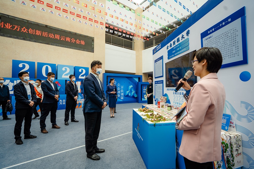 9月15日,2022年全国大众创业万众创新活动周(云南分会场)启动仪式暨云南省大众创业万众创新优秀创新创业项目成果展在昆举办。学校作为参加成果展的11家单位之一,共有“传世TranSir”、“滇菌堂-千菌一链”和“方寸工作室-你的专属条漫定制专家”三个项目亮相成果展。