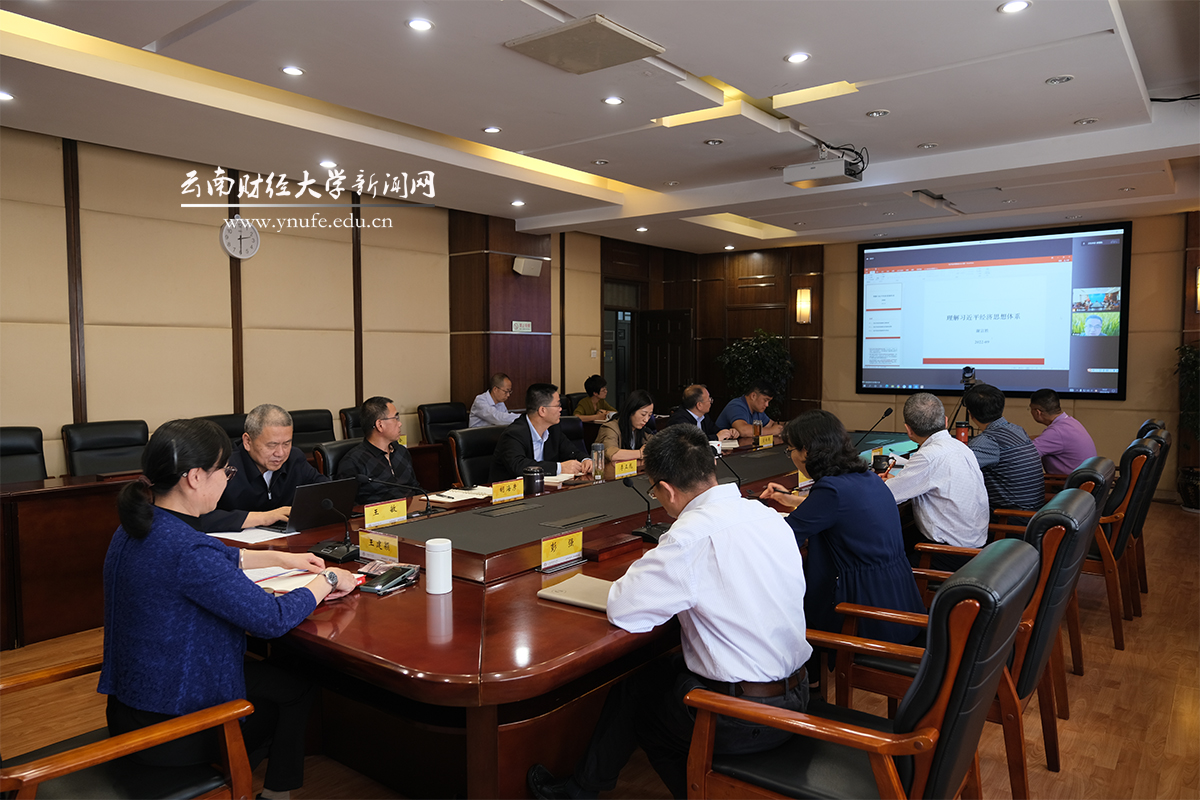 王建颖总结专题学习并提出工作要求:一是要深刻领悟习近平经济思想的原创性与实践性贡献,在学懂弄通做实上下功夫,从理论层面、历史层面、实践层面等多个角度深刻认识和理解习近平经济思想的重大意义和实践价值,形成领导带头学、党员主动学、学生跟着学的良好氛围。二是要深刻领悟习近平经济思想对新时期国内外变局的准确判断和面对机遇挑战的重大指导意义。三是要围绕立德树人根本任务,深刻领悟习近平经济思想所蕴含的国家经济建设发展的战略导向。要以服务地方社会经济发展为指针,培养能够适应发展大势、顺应世界变局的人才。四是要深刻领悟习近平经济思想中的辩证思维和方法论,处理好“破”和“立”、“上”和“下”、“点”和“面”、“大”和“小”、“远”和“近”、“统”和“分”的关系,推动达成共识,形成改革的合力。五是结合学科建设目标和教学科研方向,深刻领悟习近平经济思想对学校教学科研的重大指导意义,对接国家发展战略和习近平总书记对云南发展的目标定位,发挥学校优势,为我省经济社会发展提供智力保障。六是要把习近平经济思想贯彻落实到高水平财经大学建设全过程。要依托学校学科专业背景,积极推动习近平经济思想进教材、进课堂、进头脑,不断提升教育教学水平,提升专业课的吸引力和感染力,打造具有财经大学特色的经济大课堂。