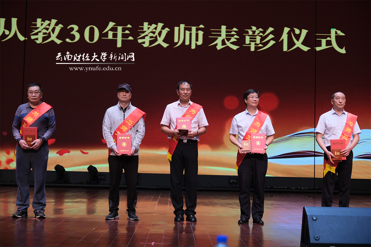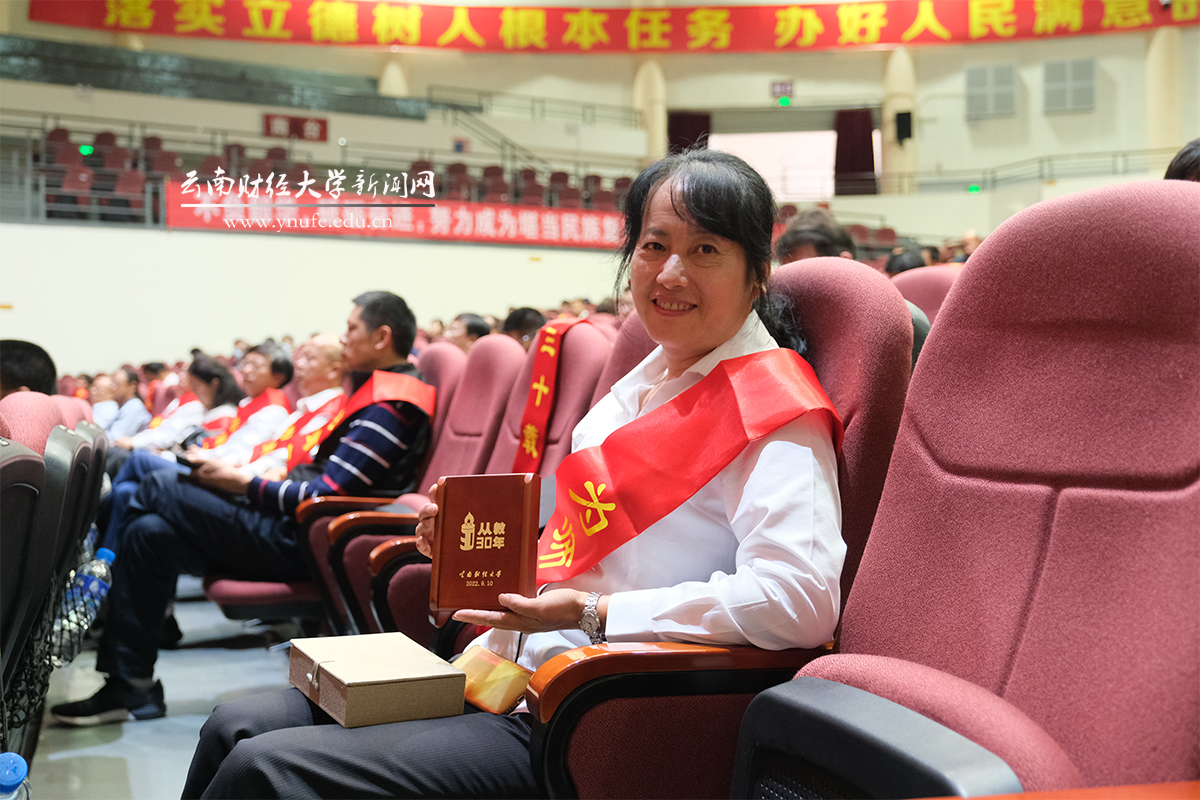 “bat365在线中国官网登录入口建校至今已历经71年,积累了宝贵的精神财富,而最重要的就是拥有一支不断赓续云财精神的教师队伍,忠诚党的教育事业,关爱学生,热爱学校,在bat365在线中国官网登录入口发展历程中留下了深刻印迹。”校党委副书记、校长王敏为获得省级以上有关表彰的教师代表和从教满30年的老教师颁发奖状,并向全体教职员工表达了感谢,向受到表彰的教师表示祝贺,同时对新进教职员工表示欢迎。