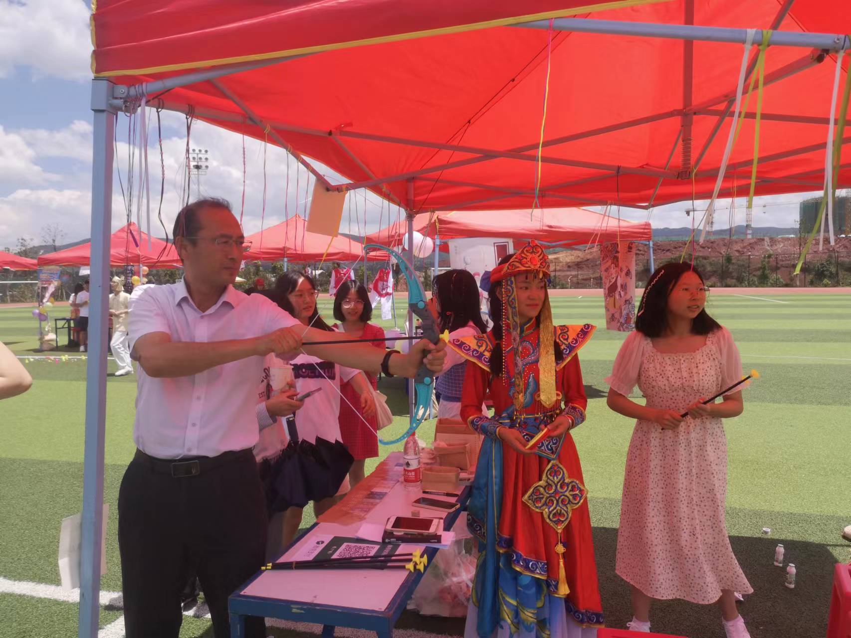 5月28日,由学校统战部、校团委主办,旅游与酒店管理学院承办的民族团结进步教育系列活动之“青春心向党,建功新征程”第九届民族博览会在安宁校区足球场开展。