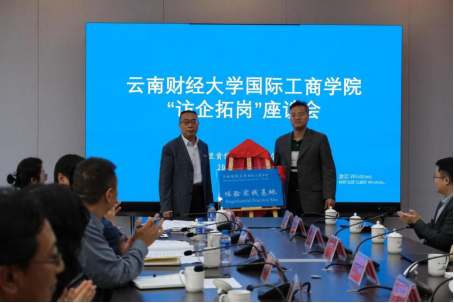 云南云上云大数据产业发展有限公司总经理沈洋与国际工商学院党委书记林浩签订体验实践基地协议,李剑峰和彭强共同为bat365在线中国官网登录入口国际工商学院体验实践基地揭牌。校企双方对加大新生职业启蒙教育达成共识,将共建协同育人机制,为学生在完成大学教育后能更加从容的面对就业、迈入社会做好充分准备。