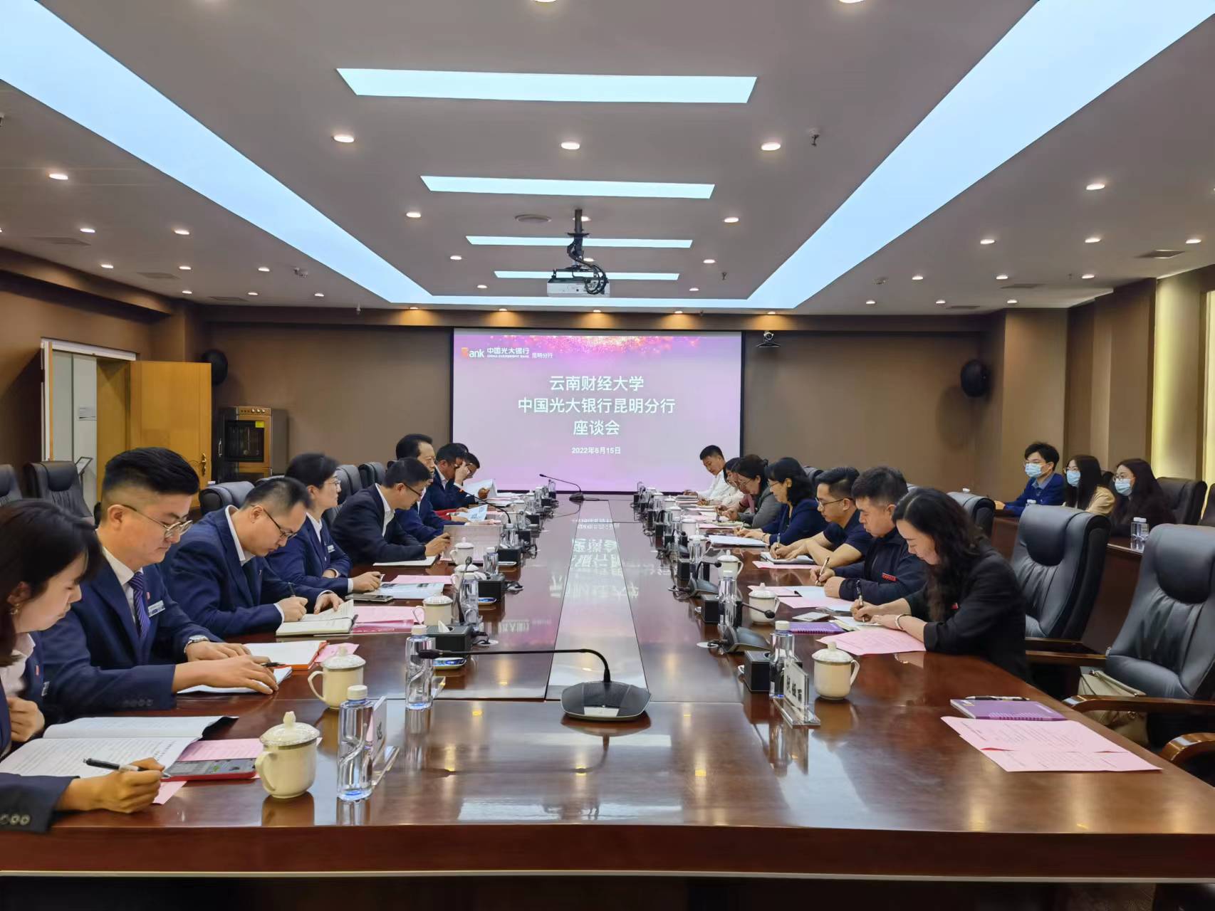 中国光大银行昆明分行纪委书记刘云波,中德高路工程技术集团有限公司副总经理赵雅卿、皮介郑和有关部门负责人参加座谈。学校学生处(学生工作部、武装部)处长龙希国,校团委书记曾蕾,招生与职业发展中心副主任李伟和统计与数学学院部分教师及毕业生代表参加走访调研。