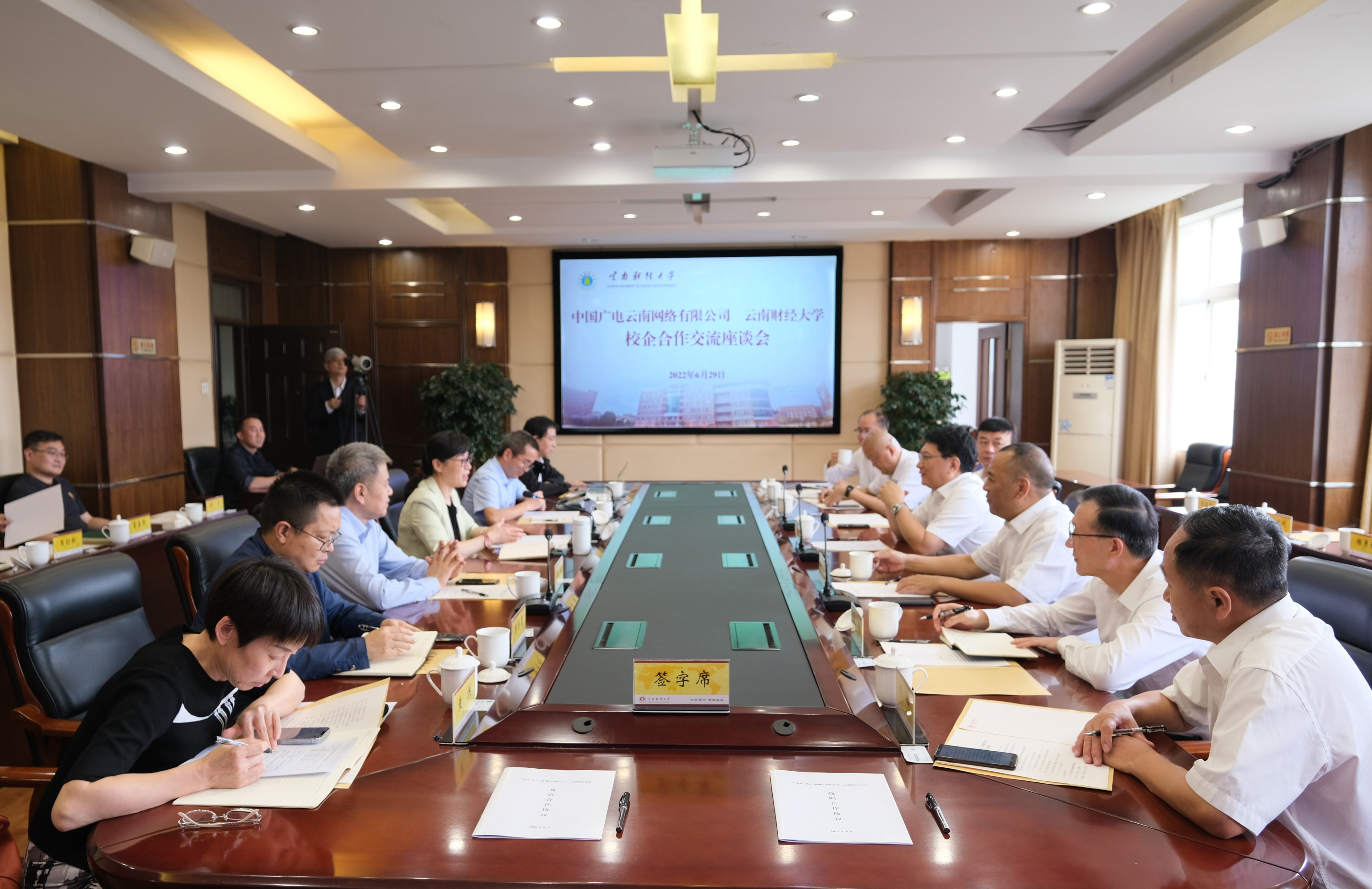 6月29日,学校与中国广电云南网络有限公司签订战略合作协议。中国广电云南网络有限公司党委书记、董事长和向东,党委副书记、总经理赵联涛,校党委书记王建颖,校党委副书记、校长王敏出席签约仪式并座谈。赵联涛、王敏代表双方签订战略合作协议。