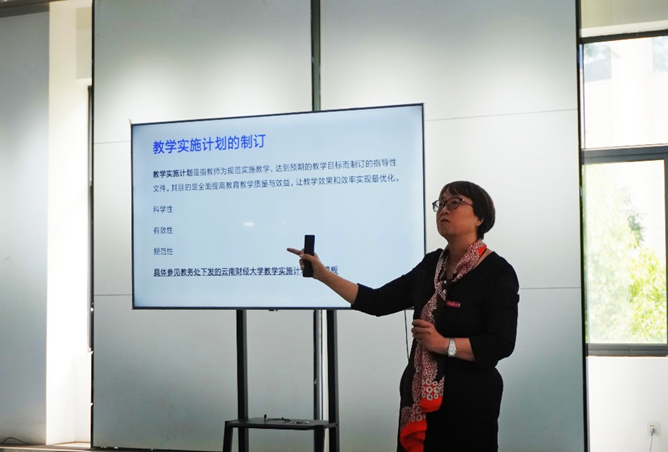活动邀请到财政与公共管理学院李妍教授和法学院简琨益副教授两名教师担任主讲嘉宾。李妍从如何上好一堂课、做好教学工作等方面向参加活动的教师详细介绍了教学五要件的重要性,并以财政学课程为例做了具体讲解。