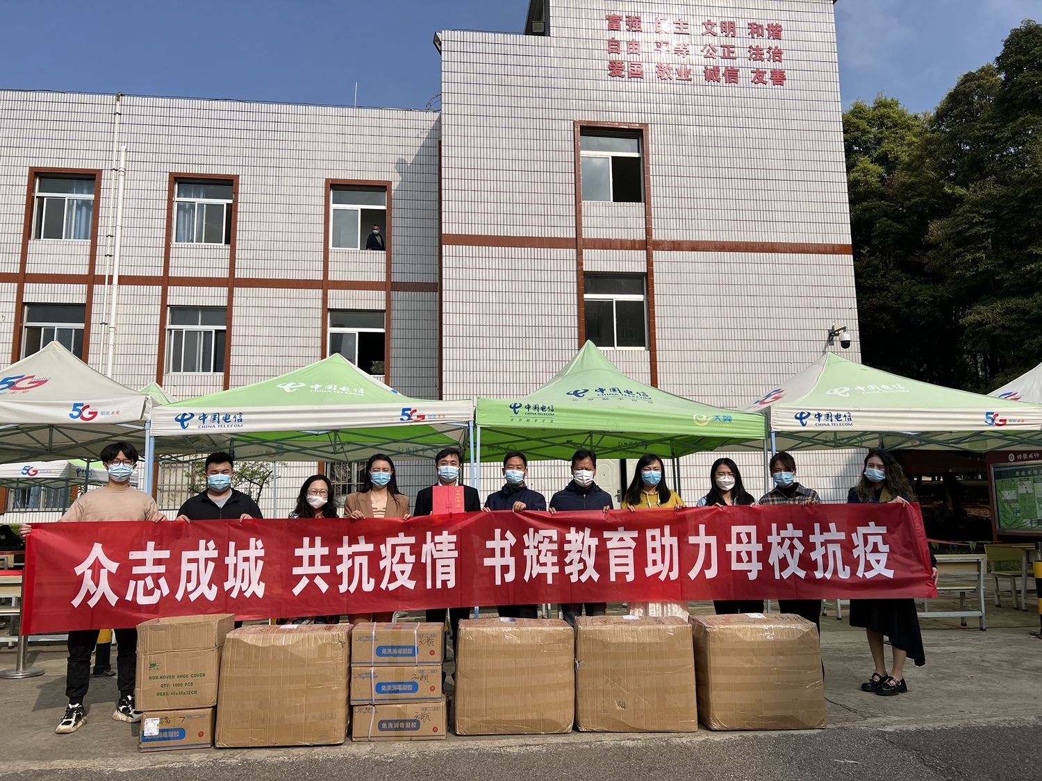 为助力学校疫情防控工作,3月30日上午,校友企业昆明市五华区书辉教育培训学校有限公司向学校捐赠20000个医用外科口罩、100瓶免洗消毒凝胶和20套防护服。校友工作办公室主任、bat365在线中国官网登录入口教育发展基金会秘书长章玲向书辉教育创始人、2014级校友施辉允颁发捐赠证书,并对施辉允校友和书辉教育表示诚挚感谢。