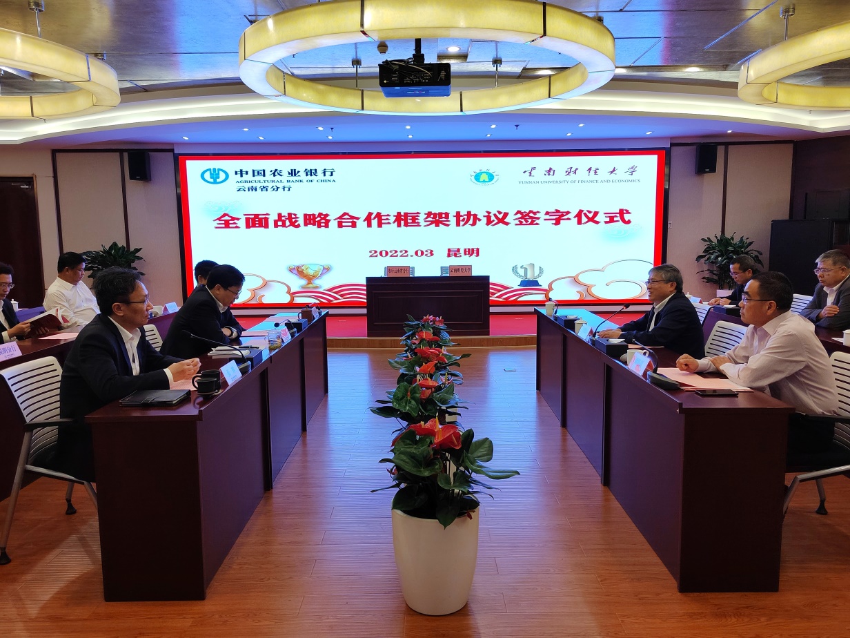 农行云南省分行党委委员、副行长张辉,农行云南省分行相关部门负责人,学校办公室、科学技术处、财务处、预算中心、金融学院、招生与职业发展中心、校友工作办公室主要负责人参加签约仪式。