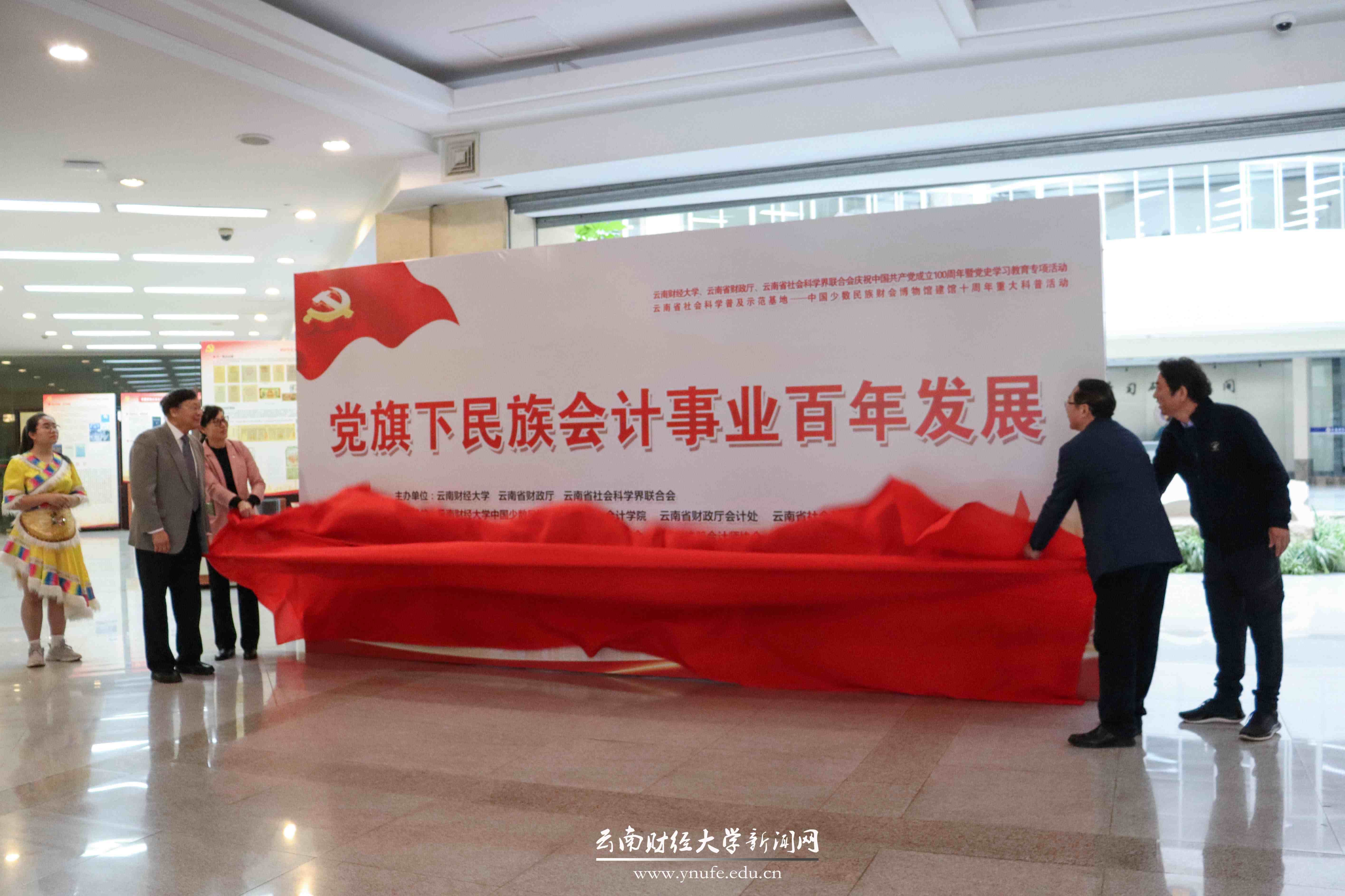 10月30日上午,由云南省财政厅、云南省社会科学联合会和bat365官网共同策划、举办的“党旗下民族会计事业百年发展”专题展览在bat365官网图书馆一楼大厅开幕。