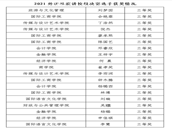 10月29日晚,2021“外研社·国才杯”全国英语演讲大赛bat365在线中国官网登录入口校级决赛在凌云楼北附201举行,共有11位选手入围本次校级决赛,经过激烈比拼,国际工商学院任明辉同学、旅游与酒店管理学院邓杨夏同学顺利挺进省级复赛。校级决赛由田有兰,刘代容,武咏梅,曾骞,颜宁,Paul,马骞7位老师担任评委。
