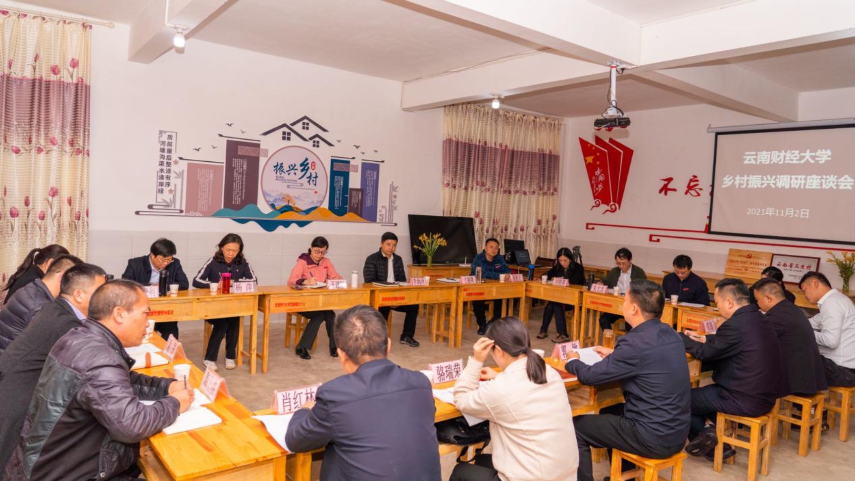 在调研结束后举行的乡村振兴座谈会上,马关县委副书记、县长郭敏主持会议并对学校多年来帮扶马关县表达了真挚的感谢。他介绍了马关县乡村振兴工作推进情况,他表示,十八大以来,马关县将打赢脱贫攻坚战作为首要政治任务,2020年5月实现脱贫摘帽,在乡村振兴工作中,全县一是要抓好脱贫攻坚成果的巩固提升;二是要紧紧围绕“兴边富民示范县”“山水田园乡村旅游示范县”“民族团结进步示范县”三个发展定位,进一步聚焦产业发展与提升;三是要抓好人才队伍建设,不断加强乡村振兴人才培训。郭敏还对马关县疫情防控、强边固防等工作进行了介绍。