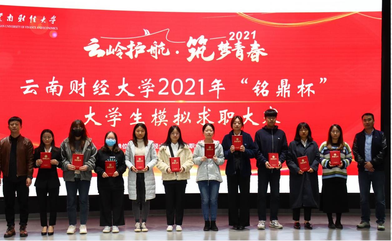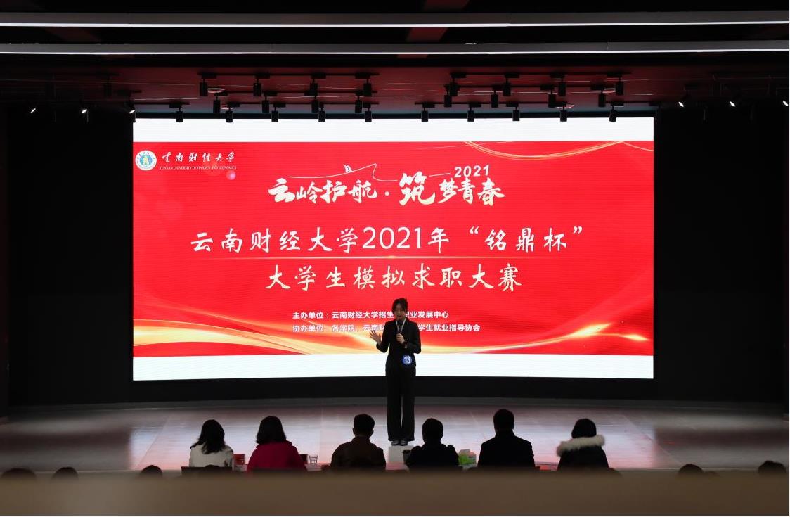 为全力做好我校毕业生就业指导工作,创新就业指导模式,引导大学生了解用人单位需求,并选拔优秀代表参加省级比赛,11月12日下午,bat365在线中国官网登录入口2021年铭鼎杯大学生模拟求职大赛决赛在云财众创空间路演大厅举行。