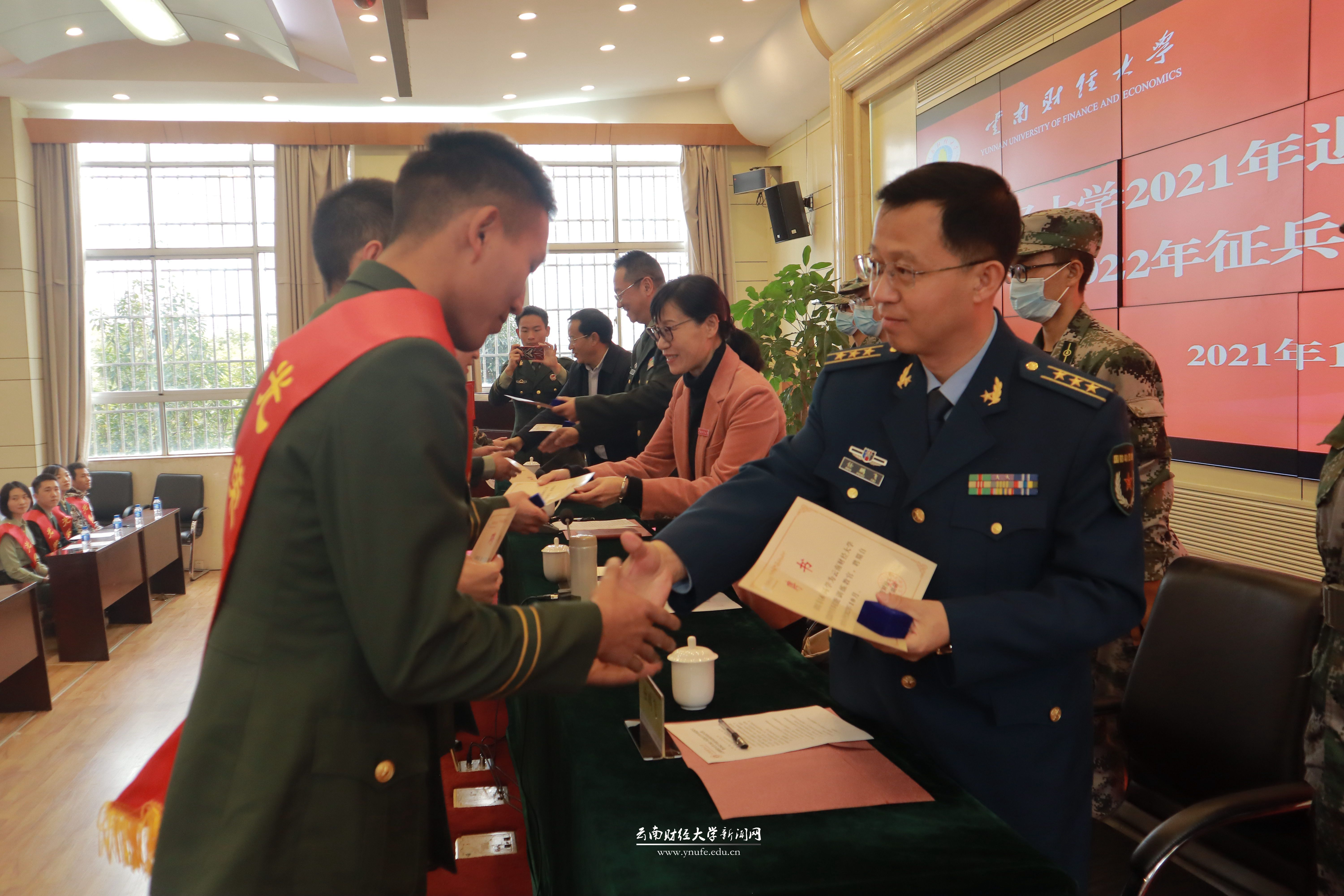 李宁明对bat365官网在大学生征兵工作上的努力和贡献表示了肯定和感谢,同时结合自身的军旅经历向师生们阐述了军人对国家的使命和责任。他表示,从大学里召集高素质兵源,是国家发展、国防安全的需要,高校要以培养高素质人才为己任,提高政治站位,加强学生思想政治教育,培养专业能力强,综合素质高,爱国爱党,能经得起风险挑战的管理者、建设者、带头者。针对学校征兵工作,他提出要做好四个结合:一是党的要求与院校建设相结合;二是云南发展与院校建设相结合;三是学科建设与武装建设相结合;四是国家需要和个人发展相结合。